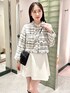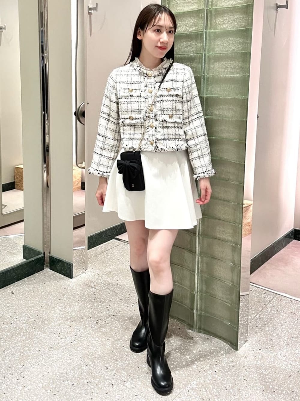 SNIDEL(SNIDEL)のノーカラージャケット「デタッチャブルフリルカラーツイードジャケット」を使ったコーディネート