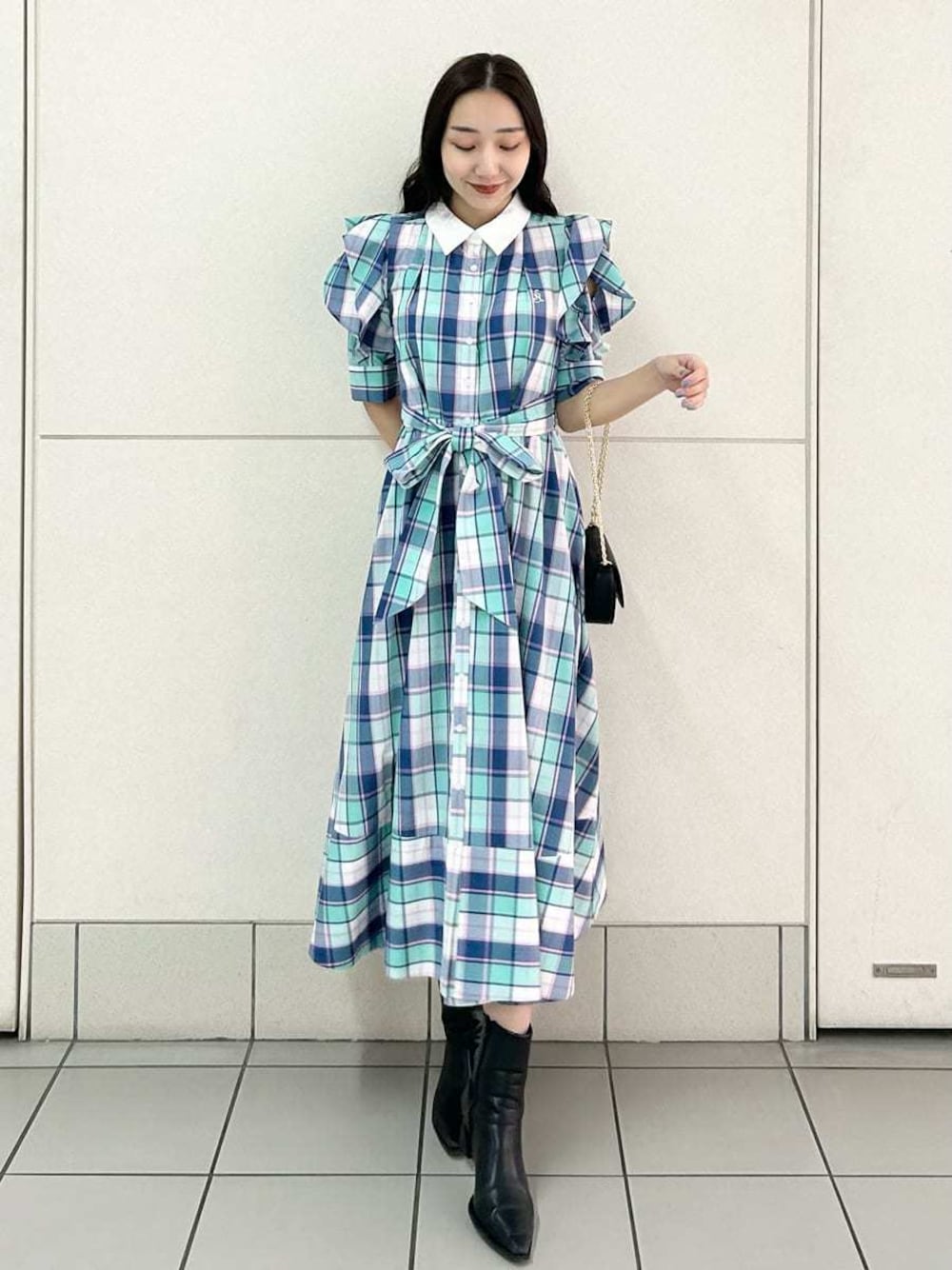 SNIDEL(SNIDEL)のワンピース「Sustainableフリルデザインシャツワンピース」を使ったコーディネート