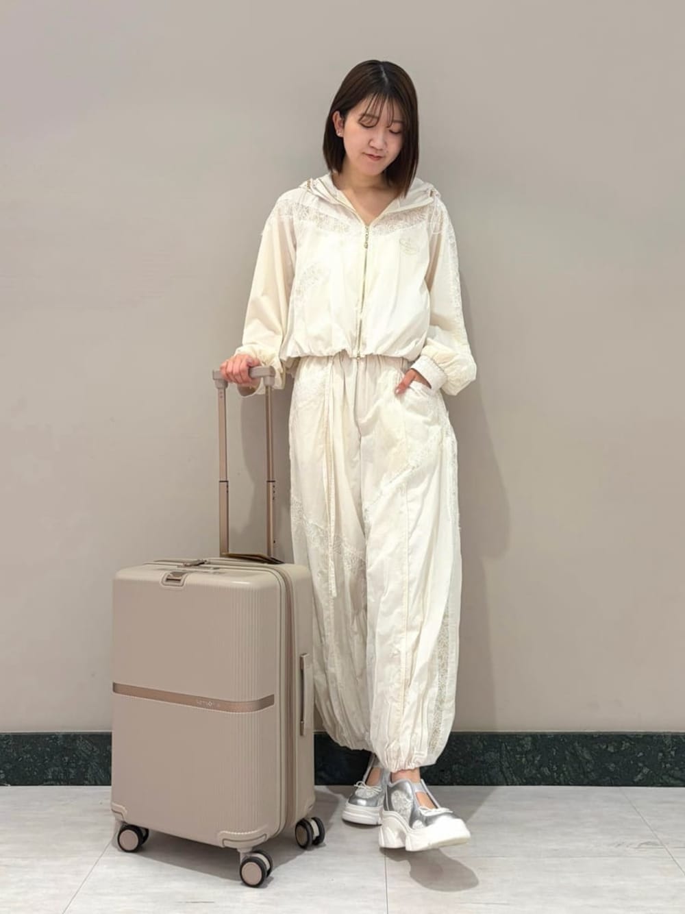 SNIDEL(SNIDEL)のブルゾン「【Chacott】コラボナイロンレースブルゾン」を使ったコーディネート