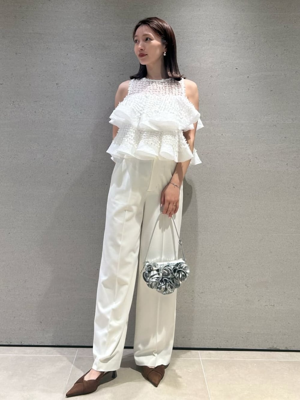 SNIDEL(SNIDEL)のスラックス「Sustainableハイウエストストレートパンツ」を使ったコーディネート