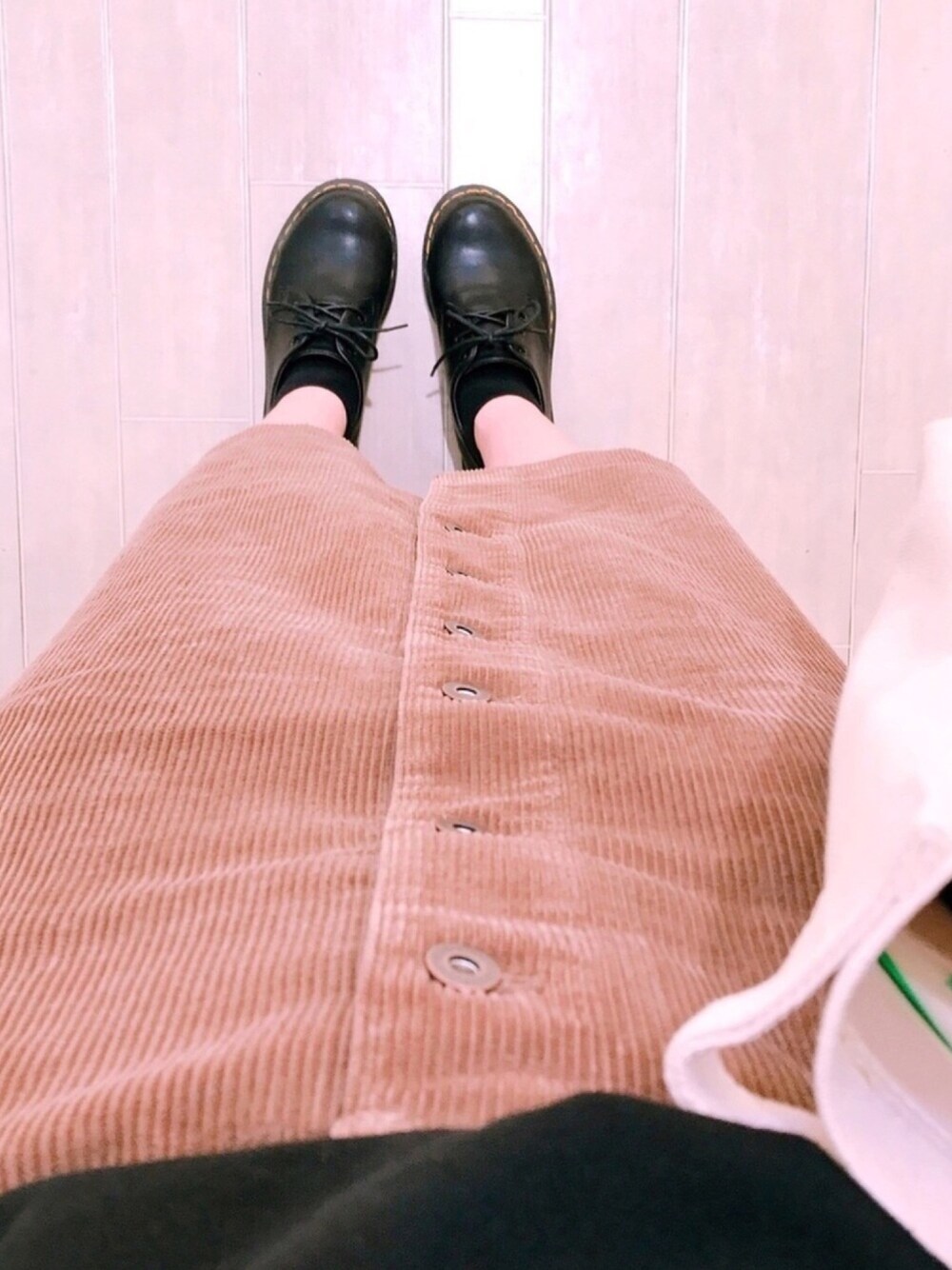 naco𓍯のスカート「コーデュロイフロントボタンスカート(ハイウエスト・丈標準69~72cm)」を使ったコーディネート