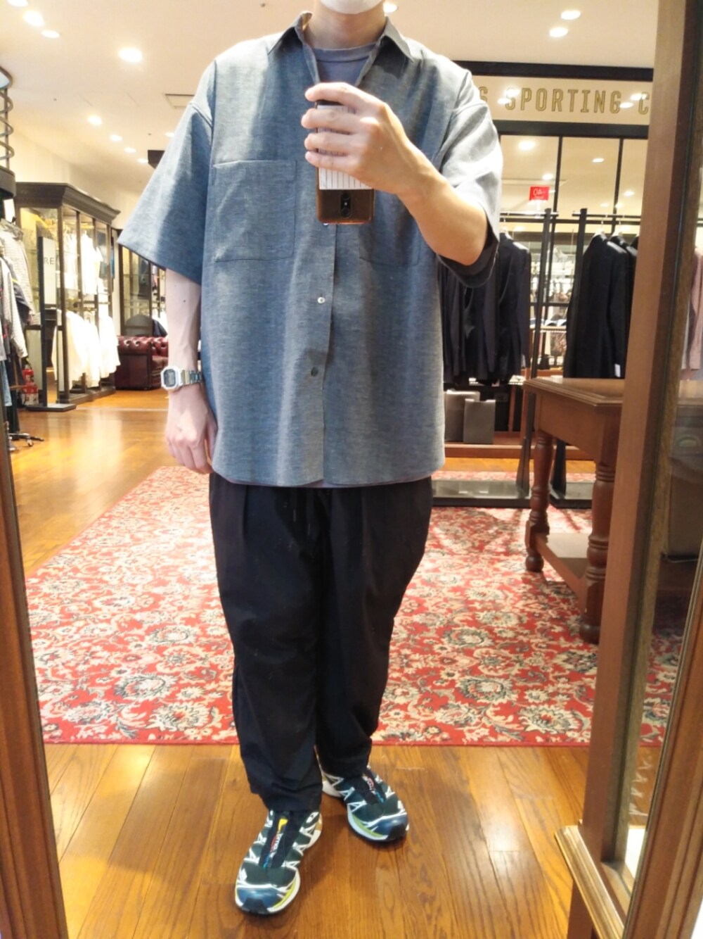シャツのサイズ感がすきです! 暑くてサンダル履きがちですがたまにはスニーカーもいいですね👟