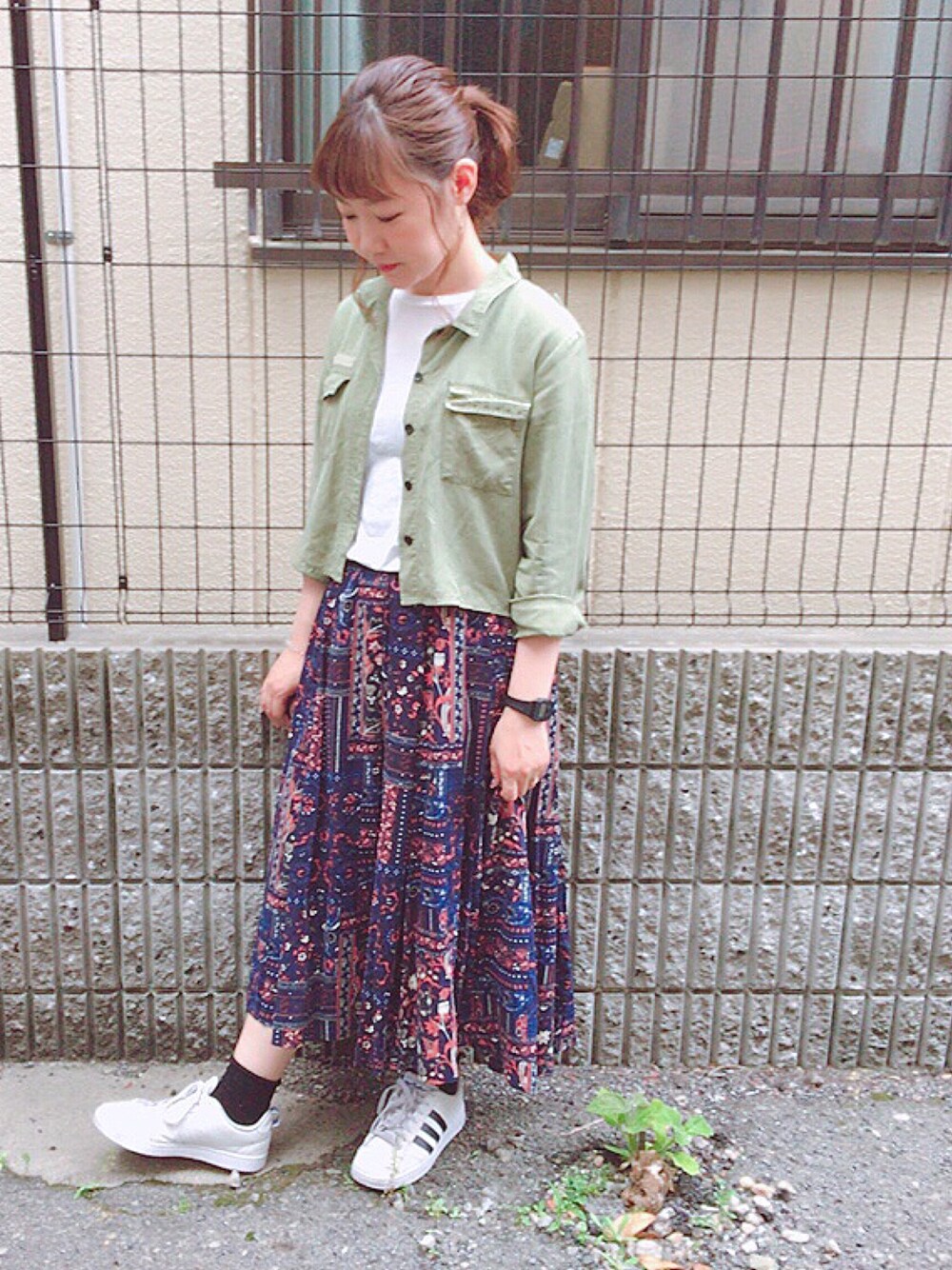 お疲れ様です( Ꙭ )/'' 今日は誕生日プレゼントで 👨🏻からもらったスカートを💓 普段履かないスカートに柄アイテム。 これを期に色々着ていこうと思います♡ いつもと撮影方法も変えてみました(笑) 見て頂きありがとうございます( ˘ᵕ˘ )\❤︎/