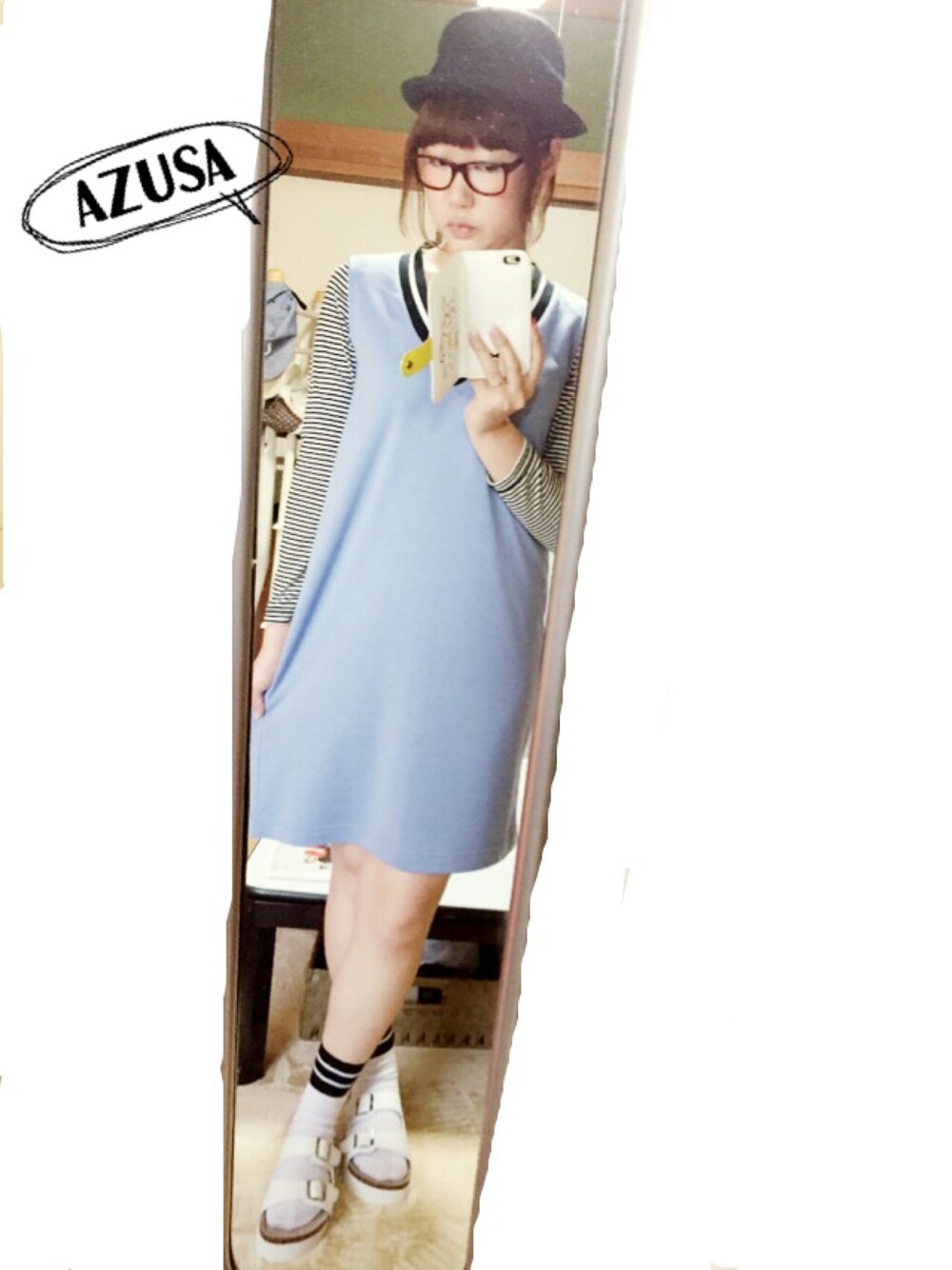 今日届いたGUの ワンピースとサンダルで 早速合わせてみました♡ ブルー滅多に着やんけど これは使えるなっ☺️✌️ 膨張して見えないからよかった💓