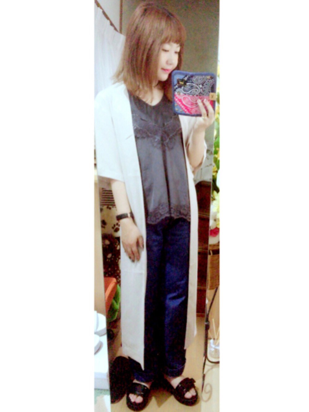お疲れ様です( ˆ࿀ˆ ) 昨日・今日と仕事がバタバタして 疲れました...笑 そんな今日のcodeは 秋を意識してみました♡🍁 newアイテムの羽織り♡ 店舗で安くなってて即決👌笑 トップスはkastaneのリブタンクに レースサテンキャミで大人っぽく♡ ワイドデニムでカジュアルさを♡ ヘアスタイルは外ハネ♡ 見て頂きありがとうございます🙆♡