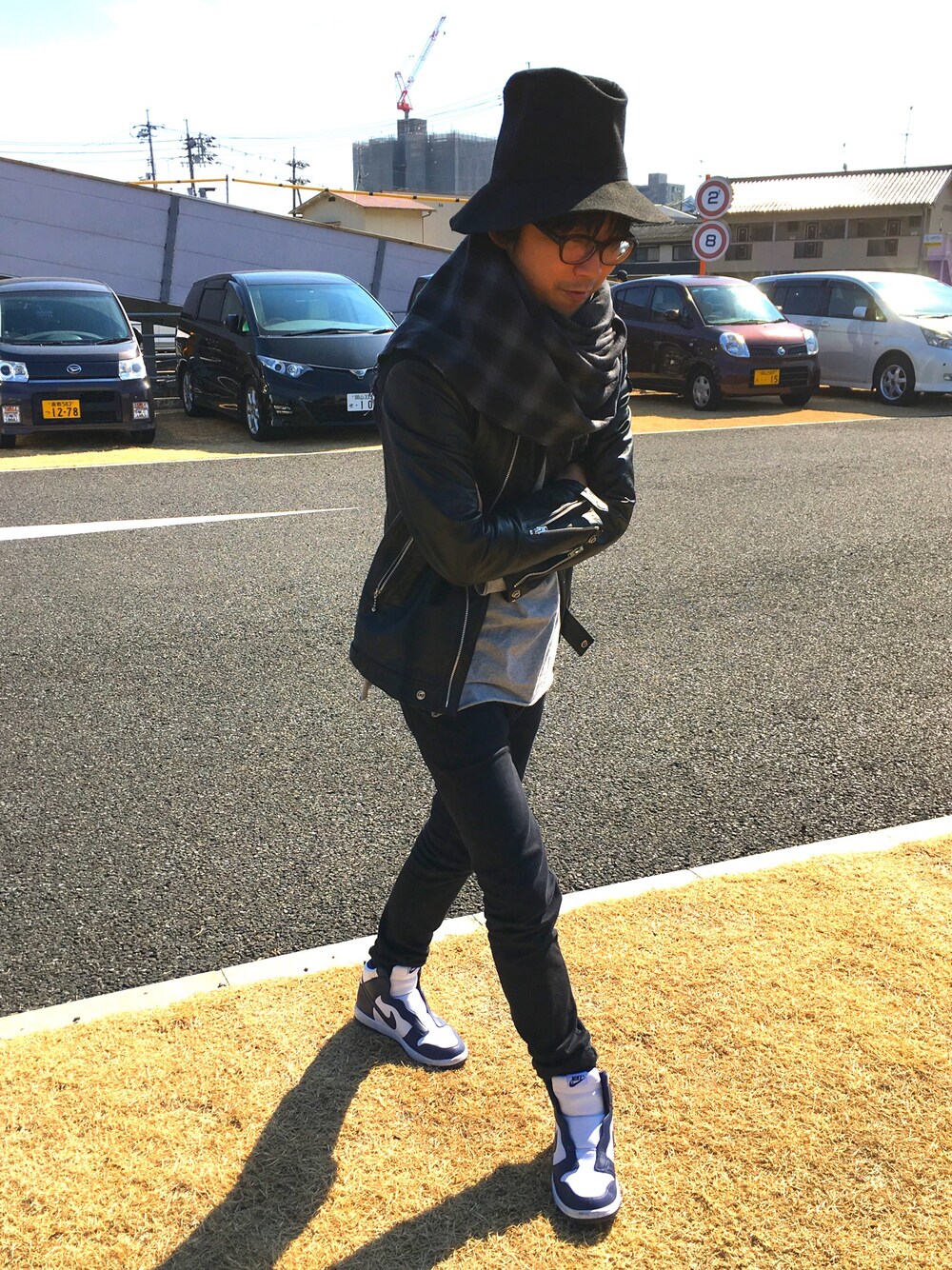 久しぶりにアンダーカバーのライダース着ました。スニーカーは、ナイキ、サカイのダンクです。