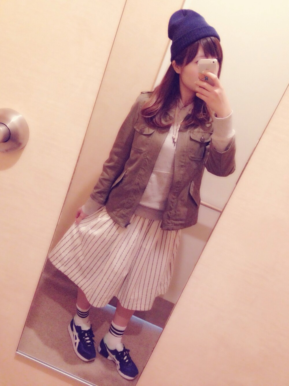 いつぞやのコーデ@コンビニのトイレ。 パーカー○UNIQLO ジャケット○ロペピクニック ニット帽○no brand