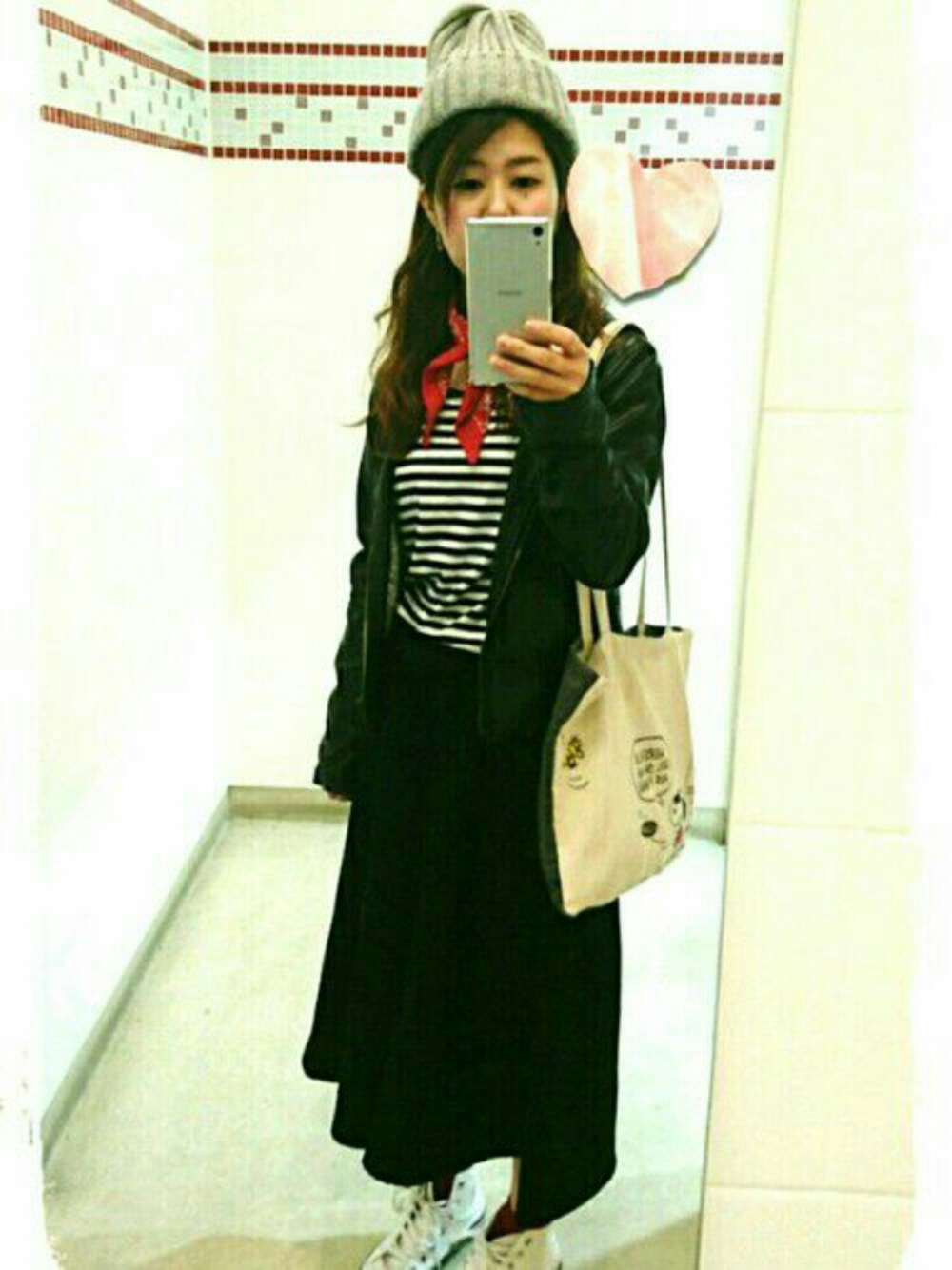 今日もみなさまお疲れさまです(^^) 見て下さった方ありがとうございます! 久しぶりにライダース着ました! 黒めな感じにしてみました✨ 最近コンバースばっか履いてます👟