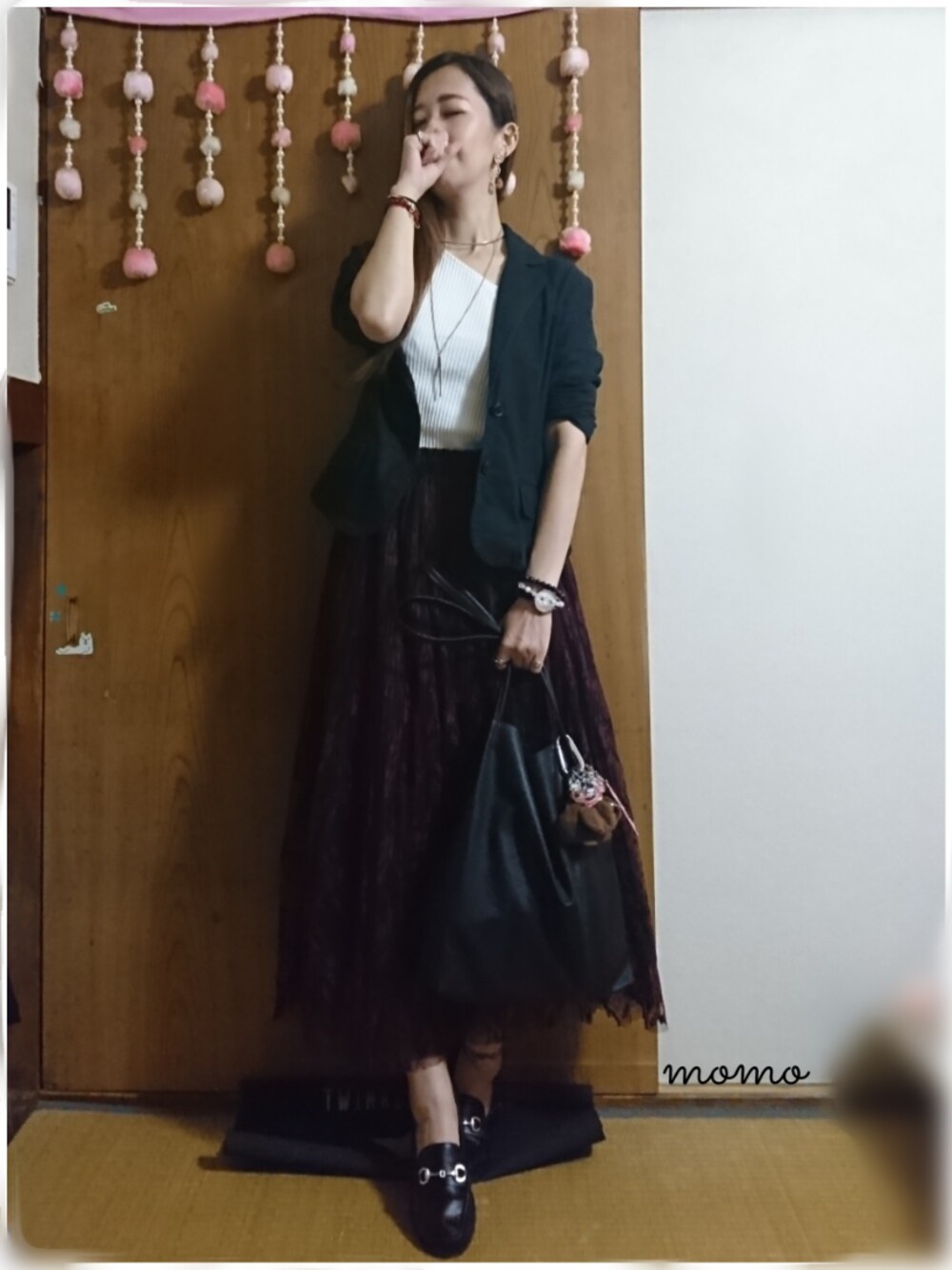 こんばんは✨ いいね&お気に入り&ビュー&フォローありがとうございます(*゚▽゚*)✨ とっても嬉しいです♥ 宜しくお願い致します((o(*>ω<*)o))✨ 今日は過去コーデです♥ 初めてアイテム投稿したけど合ってる??笑 コーデは、アシメのリブタンクに薄手のジャケット♪ 暗めのボルドーのレースチュールスカート♪ アクセサリーはゴールド系で♡ 2連のネックレスはなんと100円でした!✨笑 コーデ投稿するこの感覚なんだか懐かしい🎶 コデスナでは6年で約500コーデの投稿していて約1500名様程フォロワーさんが居て下さいました✨ また会えたら嬉しいなぁ〜♥