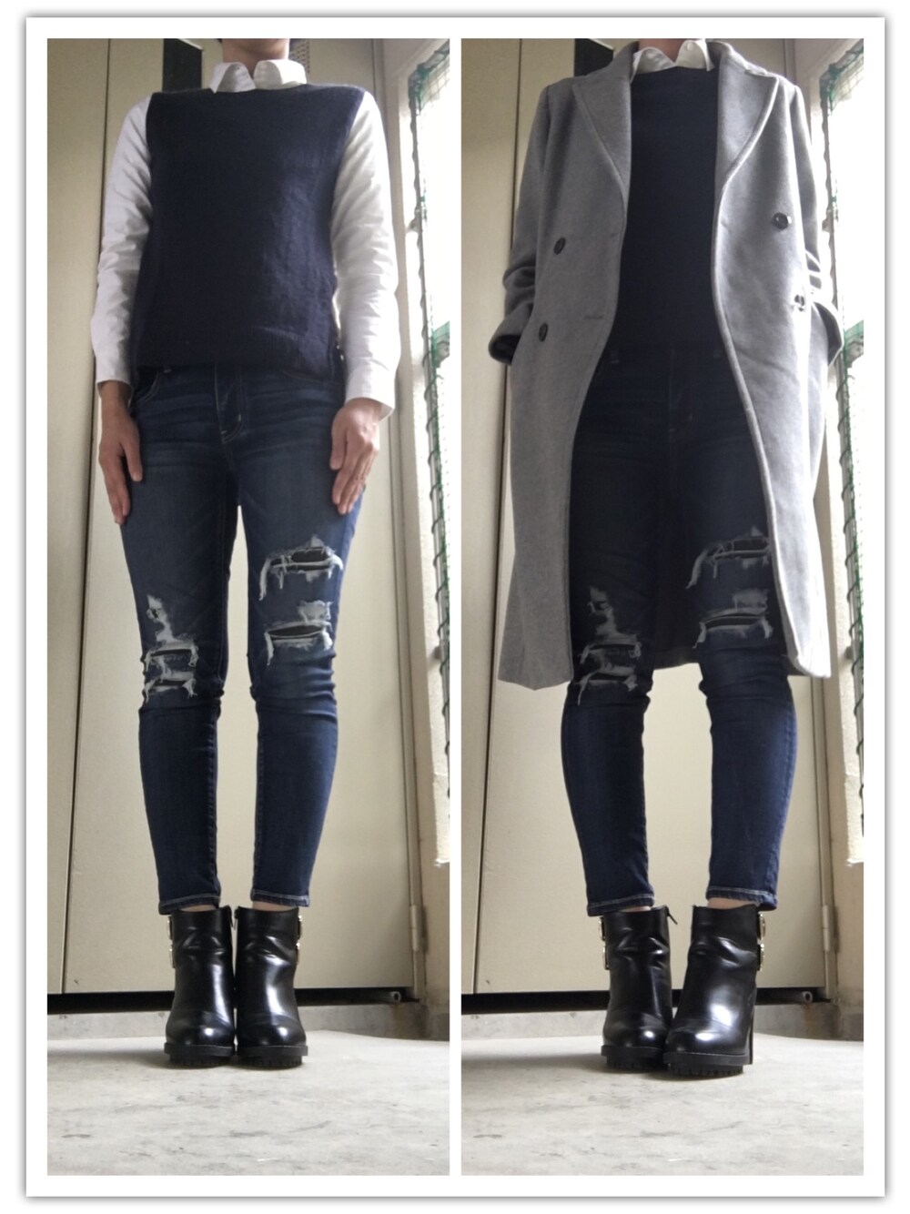 先日のとは違うチェスターコート。チェスターコート大好きで色違い、形違いで6着あります。しかも全部グローバルワーク!