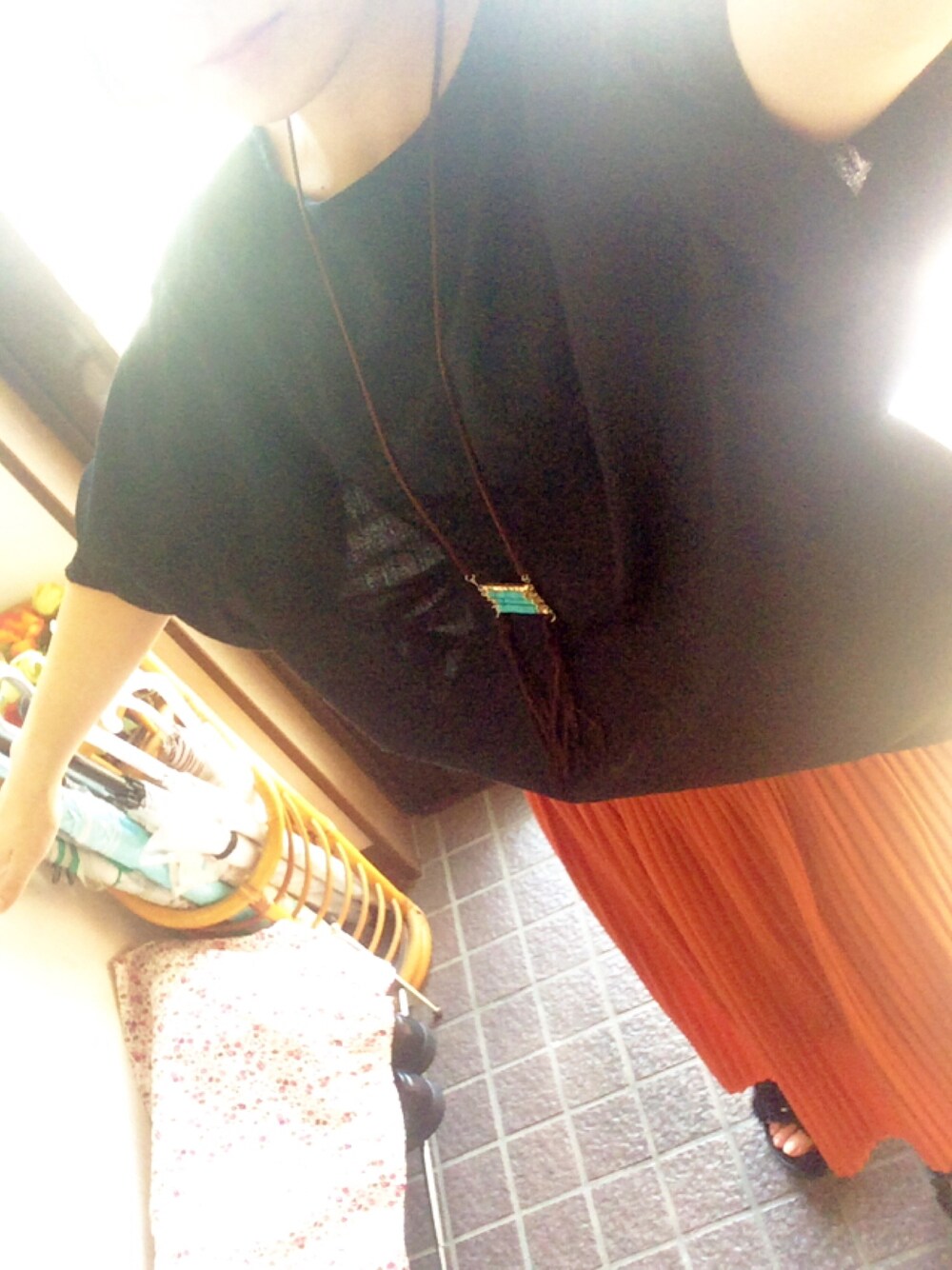 つい最近のコーデ 💃 この組み合わせ好き~~ オレンジのプリーツスカートは 秋感出るからたくさん履いてます 。 ファーのサンダル可愛いのに 何度履いても靴ズレする・・・ 😓 やっぱりカスタネが好きだな っ