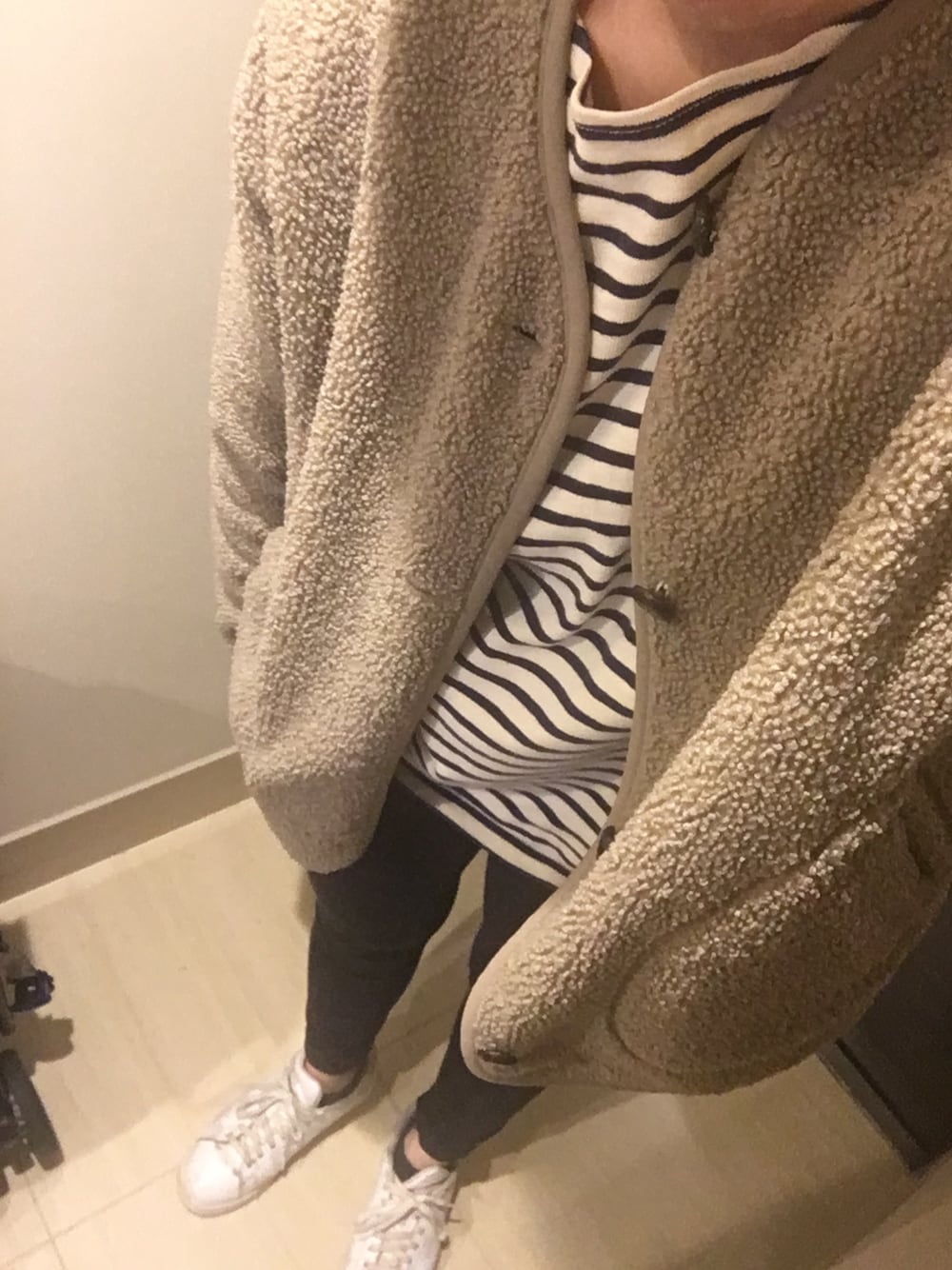 普段着。 ユニクロのボアブルゾンは軽くて暖かいので去年からめっちゃ着てる。