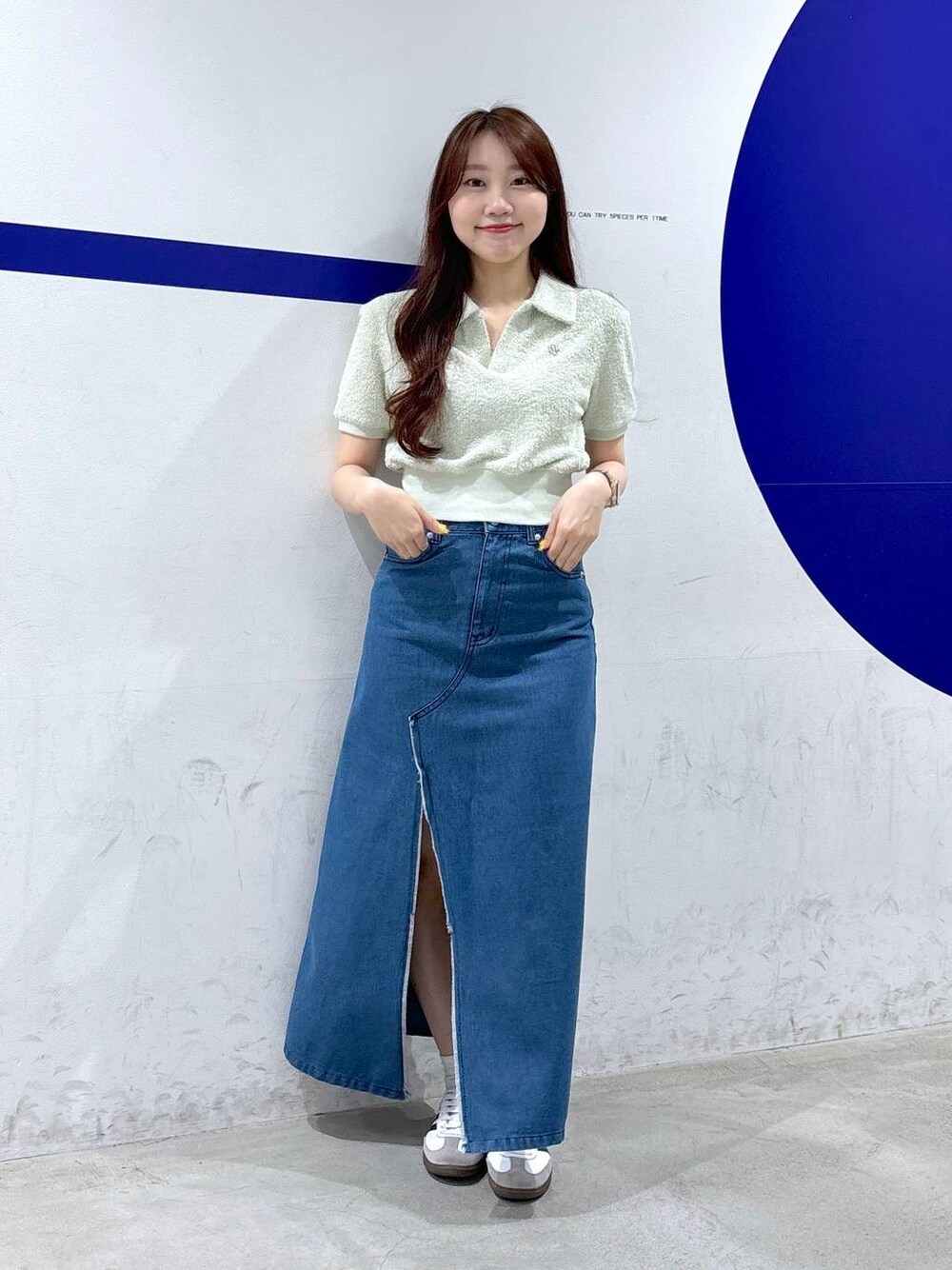 snowae(ALAND 本部)のスカート「3.3 Field Trip/スリットデニムロングスカート 2107715」を使ったコーディネート