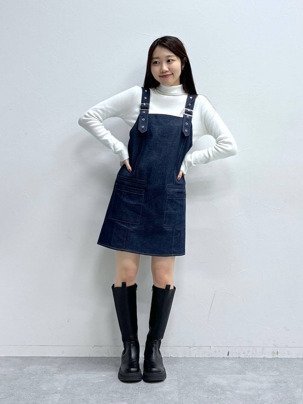 〈デニムワンピコーデ👭🏻〉 ご覧いただきありがとうございます(^^)/ ◾︎ワンピース ハリ感あるデニム生地のミニワンピです! 丈は肩の所で調整できるので、低身長の方~高身長の方まで着ていただけます☝🏻 大きめのポケットが付いてるのがポイントで、 これ1枚で着ても◎ 今の季節なら、上からニットやカーディガンを着れば真冬でも使えます☺️ ---------------------------------------------- ぜひ気に入ったスタイリングがあれば♡マークのお気に入りお願いします😌 Instagram▶︎【】