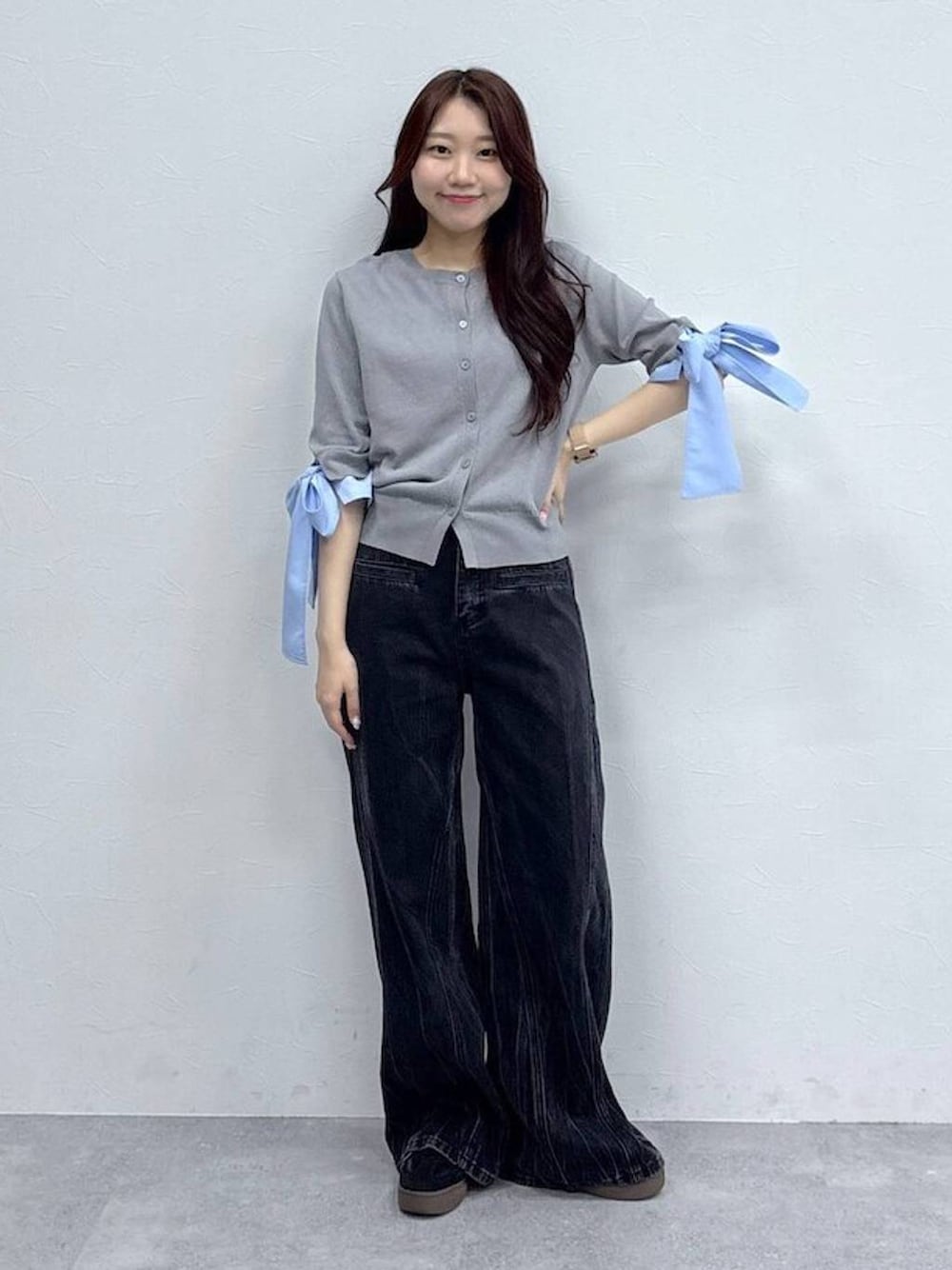 snowae(ALAND 本部)のカーディガン/ボレロ「3.3 Field Trip/リボンレイヤードカーディガン」を使ったコーディネート