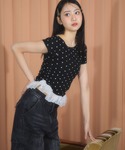 〈ドットコーデ🫧〉 ご覧いただきありがとうございます(^^)/ ◾︎Tシャツ 今人気のレースがドッキングされた、ドットTシャツです✨️ 首周りはワンショル風に着れるデザインで、骨格ウェーブ大優勝のトップスです!! ---------------------------------------------- ぜひ気に入ったスタイリングがあれば♡マークのお気に入りお願いします😌 Instagram▶︎【】