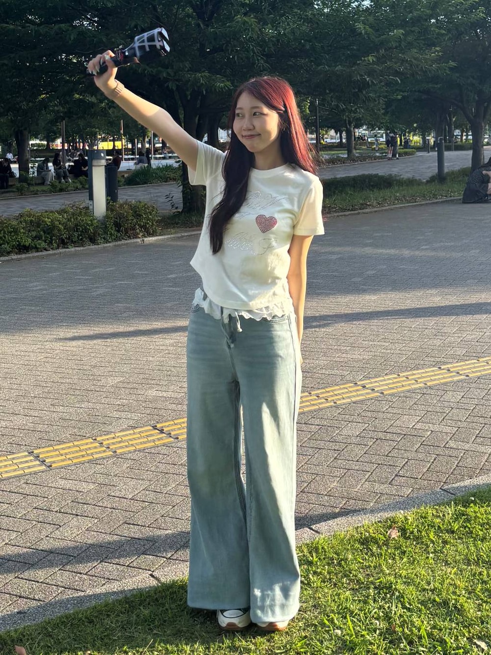 〈推し活コーデ🩵〉 ご覧いただきありがとうございます(^^)/ ◾︎Tシャツ リアルバイしたストーンTシャツです✨️ 何よりも、キラキラしたストーンが可愛いのがポイントです!! Tシャツの裾がラウンドしているので、細見えします! 色違いで推し活コーデもオススメです😉 ---------------------------------------------- ぜひ気に入ったスタイリングがあれば♡マークのお気に入りお願いします😌 Instagram▶︎【】