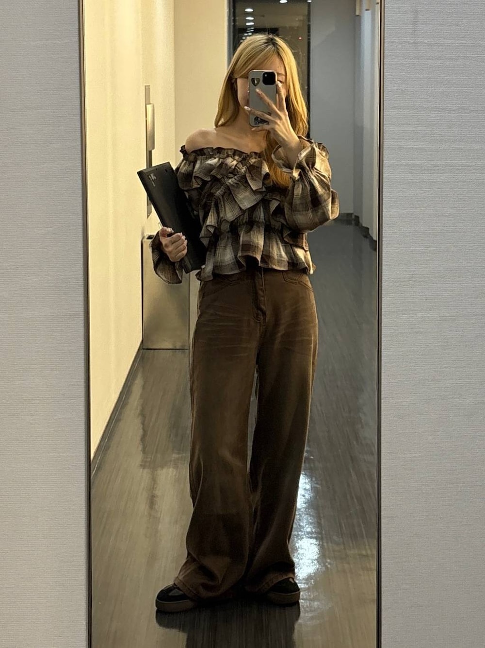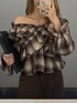 〈チェックオフショルコーデ🤎〉 ご覧いただきありがとうございます(^^)/ ◾︎トップス オフショルスタイルで大人っぽく着れるトップスです✨️ 肩部分は、キツすぎず、緩すぎないゴムが入っています◎ 肩見せが苦手な方は、下ろさず着ても可愛いデザインになってるので安心です👌🏻 フリルが沢山付いたボリューム感あるトップスなので、 ボトムスはスカートやワイド過ぎないパンツがオススメです! ---------------------------------------------- ぜひ気に入ったスタイリングがあれば♡マークのお気に入りお願いします😌 Instagram▶︎【】 Tiktok▶︎【】