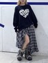 〈ネイビーコーデ💙〉 ご覧いただきありがとうございます(^^)/ ◾︎トップス ロゴがハート型に付いた大きめのデザインがインパクトある可愛いニットです✨️ もちもちした厚手のニットで、1枚で十分暖かいニットです! サイズ感は少しゆったりめで、 チェックスカートと合わせて秋冬っぽさをUPさせてみました🍁🍂 シャツやタートルネックをレイヤードして着るのもオススメです☝🏻 ---------------------------------------------- ぜひ気に入ったスタイリングがあれば♡マークのお気に入りお願いします😌 Instagram▶︎【】 Tiktok▶︎【】