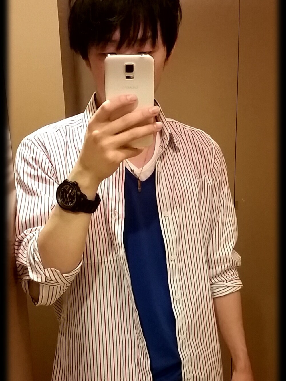 珍しく連続投稿ですヽ(・∀・)ノ 自分の仕事をしに、 職場にレッツラゴー!! このシャツは表と裏のストライプが 変化していて、 袖をまくると違って見えます(*´∀`)♪