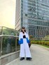ブルー系のスウェットを着用したレディースの春コーディネートの3枚目の写真