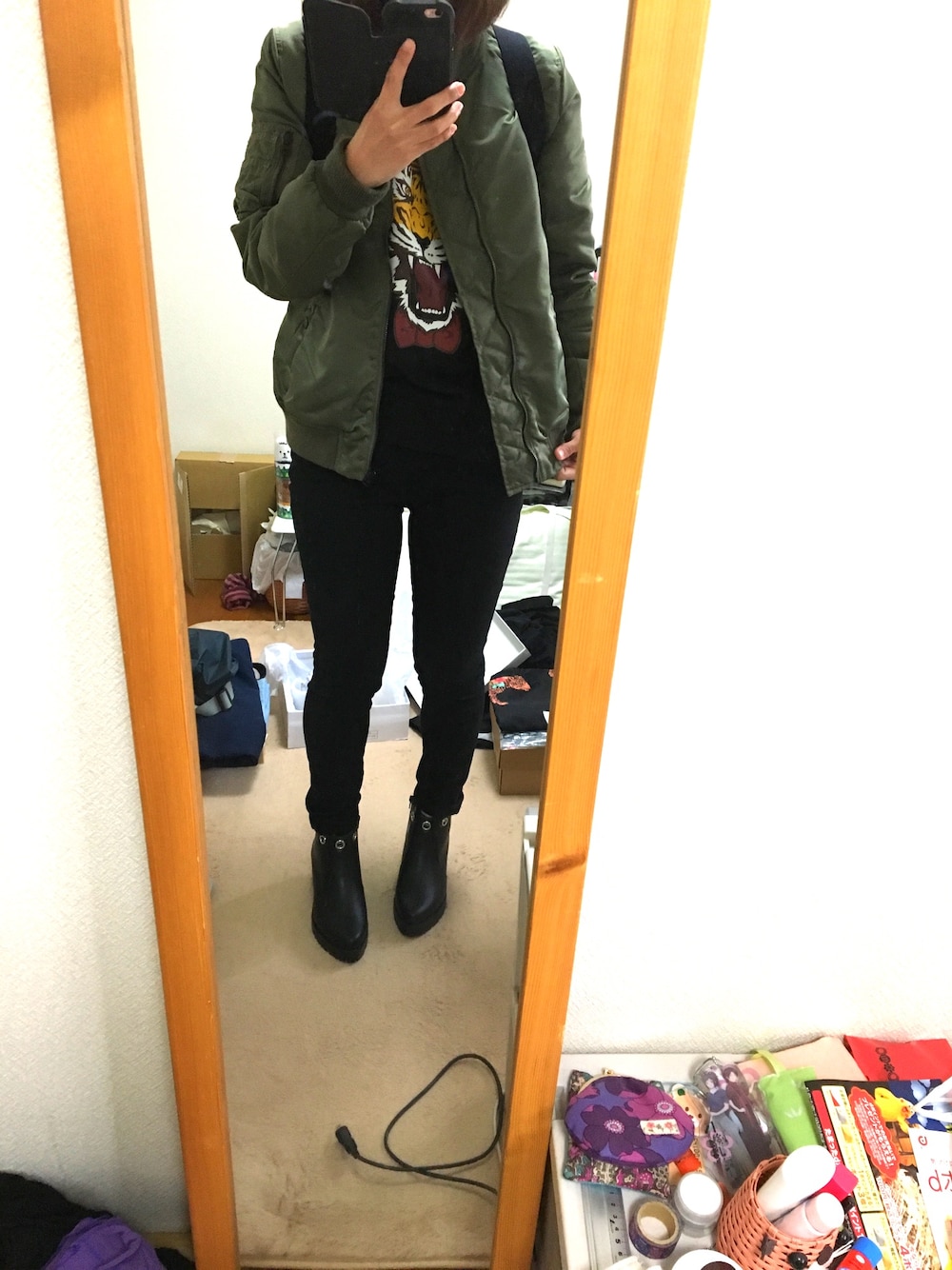 靴を出したら部屋が…気にしないでください😭 トレーナーはユーリ on iceのグッズです(笑) オタクです、すいません💦 豚がスキニー履いたらだめですね…