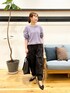 コットン100%の気持ちいい着心地のコットン畦Vネックニット。ゆったりした身幅とVネックが女性らしい雰囲気で着ていただけます。 裾のリブがしっかり止まってくれるので、インしなくても適度にコンパクトにバランスよい丈になってくれます! 春らしいラベンダーカラーは顔映りも明るく華やかにしてくれます♪ かぐれのユーティリティーイージーパンツ、私はカーキをヘビロテしてますがINKBLACK欲しいです♪ 真っ黒ではないんですよね、なんかちょっとチャコールっぽい感じもする絶妙に良い感じの合わせやすいカラーです。結構なゆったりなので実物見たら大っきすぎるやろ!て思われるかもしれません、私も思てました、が、かぐれはそれが可愛いです◎(^^) ウエストひとつ折って、裾のボタン留めたら小柄な方でも可愛く履いていただけます♪ Vネックのちょっと女性らしい雰囲気のトップスともとっても相性良しですよ◎ タッセル付軽量シンプルトートバッグ、私が持つとかなり大きく見えるかもですが、 A4の書類や、お弁当、水筒が余裕で入れれるぐらいの大きさです。