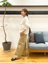 『別注』Lee×DOORS ワイドストレートパンツは小柄さんにも嬉しい3サイズ展開です! XSで裾上げなしでいけます!…といいつつ、 あースニーカーに履き替えてみた方が良かった…と思ってます。 Vカットパンプスはだいぶフラットなのでちょっとギリギリになっちゃってます。 スニーカーだと裾丁度良しだと思います◎ やっぱLeeですね、形がめちゃくちゃ綺麗です! ワイドといいながらも腰回りはスッキリ、脚をまっすぐ見せてくれます。 足短い私でもそれなりに見える気がしてこないこともなくはないような気がする夢のような錯覚を起こしてしまうシルエット。 脱いでからちゃんと夢から現実に戻りましょう。幻です。 シンプルにEKALのスプリットドルマンカットソーを合わせています。 ちっちゃく胸元に付いてる’EKAL’の文字とデザインがめっちゃ可愛いのでただの白のロンTとはやっぱり違います♪ 結構ゆったりの身幅ですが着丈がコンパクトなので今回のようなワイドパンツでもサラッとインせず着れる感じです! 『別注』DRIFTER×DOORS ショルダーバッグ、また持ってきてしまった… カジュアルコーデに使いやすいんですよね。 ちなみに意外とかなりしっかりした厚めの生地です。お財布、スマホ、小さめポーチ、ハンカチなど最低限の小物は入りそうです◎