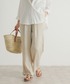 夏のオフィススタイルや、もちろん普段使いにもおすすめな『UR TECH DRYLUXE』2WAYバルーンスリーブブラウス。 大人っぽいシンプルブラウスながらもふんわりバルーンスリーブがちょっぴり可愛らしく、前後お好きな方で使えます! ボタン側はVネックみたいな形でよりスッキリ着られそうです♪ あと私が好きな部分は裾が丸くカットされてるとこ。 横から見たら分かりやすいんですが裾をインしなくてもだらしなく見えずちゃんと可愛いデザインになっています。 生地もかなりしっかりしてるので透け感なしです。 しっかりハリのある生地なので暑いのかと思いきや、アーバンリサーチが独自開発した「UR TECH」シリーズで「イージーケア」「接触冷感」「UVカット」機能付きで快適に着ていただけます◎ ちょっと大人っぽい楊柳イージーパンツを合わせています。 シボ感があるので肌に当たる部分が少なく、涼しい履き心地です。 ワンサイズの長めの丈なのでウエストひとつ折って履いてます。 それでも結構ギリギリなのでもうちょいソールしっかり厚めソールの方が裾引きずらず安心かもです。(151㎝) とはいえ今回履いてるカッティングサンダル、足の甲のデザインがシンプルで合わせやすいながらもとってもオシャレで可愛いデザインでとってもおすすめです。(^^)