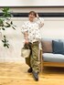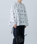 かぐれのクロスステッチスモックブラウス。 よくよく見たらちっちゃい鳥ちゃんとお花の刺繍が可愛すぎてます! OFFの方の刺繍はネイビーでされてます。 鳥ちゃんの大きさは500円玉ぐらいなんで、しっかり存在感ありの華やかな印象です。 しっかり厚みのあるコットン100%の素材。 白でも結構しっかり厚みのある生地なので、そこまでインナー気にせず着ていただけそうです♪ バッチリ主役になるデザインですが、ベストに合わせたりするのも可愛いし、寒くなったら中にタートル合わせも素敵、色んな着回しが楽しめそうです! そして合わせてるのはユーティリティーイージーパンツ。 私は去年購入して愛用してますよ♪ 裾のボタンで絞ってもボタンを外して履いても可愛いこちら。 私は長いのでウエスト折って履いてます。 ざっくりガバッとした大きさとメンズライクな雰囲気ですが、可愛いいデザインのブラウスと合わせるとめっちゃいい具合に中和してくれます◎(^^) 📢インスタに簡単なリール動画を載せていってます。☺️プロフィールのインスタマークからとべます☝🏻