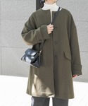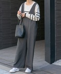 FORK&SPOON Uネックサロペット。 生地感とシルエットがちょっぴり大人な雰囲気のサロペット。 肩紐部分もちょっと太め。体のラインを拾わないのに綺麗めな生地がストンと綺麗に落ちてくれるので全然着膨れしない…! ゆとりある身幅なので腰張りさん、モモ張りさん、お尻やお腹周りが気になるのよねという方にもかなりおすすめです♪ 肩紐の調節はできませんが、私は1のサイズでロデスコの5センチソールのブーツでギリギリいける感じです!(151cm) 中に着てるのはFORK&SPOONのウーステッドヤーンクルーネックニット。 ポリエステルとウールが混ざってるみたいですが特にウールのチクチク感はなく、とっても快適な着心地。 ちょっと表面に光沢感があるのでちょっと上品な雰囲気もあります♪ ニットも今はお洗濯できるのがいいですよね◎ アウターにはFORK&SPOON ノーカラーコートのカーキを。 しっかり張りある綺麗でシンプルなAラインシルエット。 ピリングになりにくい機能素材ということで、確かに毛足も短く、長く綺麗なまま着れそうな生地感です♪ ノーカラーでタートルやマフラー、ストールで雰囲気変えて楽しめるのがとっても良いです◎