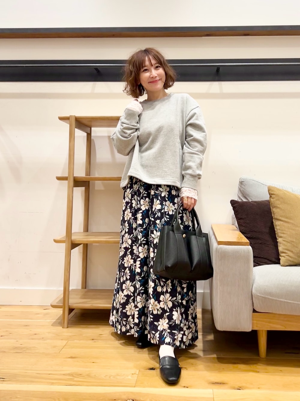 👚 コットンスウェットヘムドロストプルオーバー 一見ベーシックだけど、着るとなんかバランスいいスウェット。 今回はそのままAラインのシルエットで楽に着てますが裾のドロストを少し絞るだけで、腰まわりに丸みが出てシルエットが一気に今っぽくなります。 カジュアルにもキレイめボトムスとも合うので着回し力抜群です。 薄すぎない生地感なので、春先は簡単にこれ一枚でちょうど良さそうです! 👕URBAN RESEARCHのストレッチレーストップス 色んなトップスのインナーに使うだけでオシャレ感出してくれるかなり使えるアイテムです。 ストレッチも効いてて伸縮性あるのでレースですが着心地も楽です♪ 👗 レーヨンフラワープリントスカート 大胆で華やかな花柄。デニムシャツで甘さ控えめで合わせてます。 落ち感がきれいで、歩いたときの揺れ方が大人っぽいシルエット。 シンプルなニットやスウェットを合わせるだけで、コーデがちゃんと成立するのも助かります。 ワンサイズですが、私が履いて足首ぐらいのロングスカートとしていいぐらいになります。 小柄さんもばっちり履いていただけます◎(151c) 👜プチダブルポケットトートバッグ とっても軽くて外側の大きなポケットにスマホや鍵やリップなどポイポイ好きに入れられてかなり便利に使えます! ショルダーにもなり、大きめポーチがついてます。 きれい目にもカジュアルにも合わせやすいバッグはこちらです! 👞 スクエアトゥプチメタルローファー 驚きのやわらかさ! サイドにプチっと付いてるゴールドが目立ちすぎずも顔さ可愛らしいポイントに。 色んなコーディネートに合わせやすいローファーは一足あると絶対便利です <button onclick="window.https://www.instagram.com/x_x_x_yuki_x_x_x?igsh=MTZ0djZjaHZqOTk1dg%3D%3D&utm_source=qrlocation.href=''">instgram</