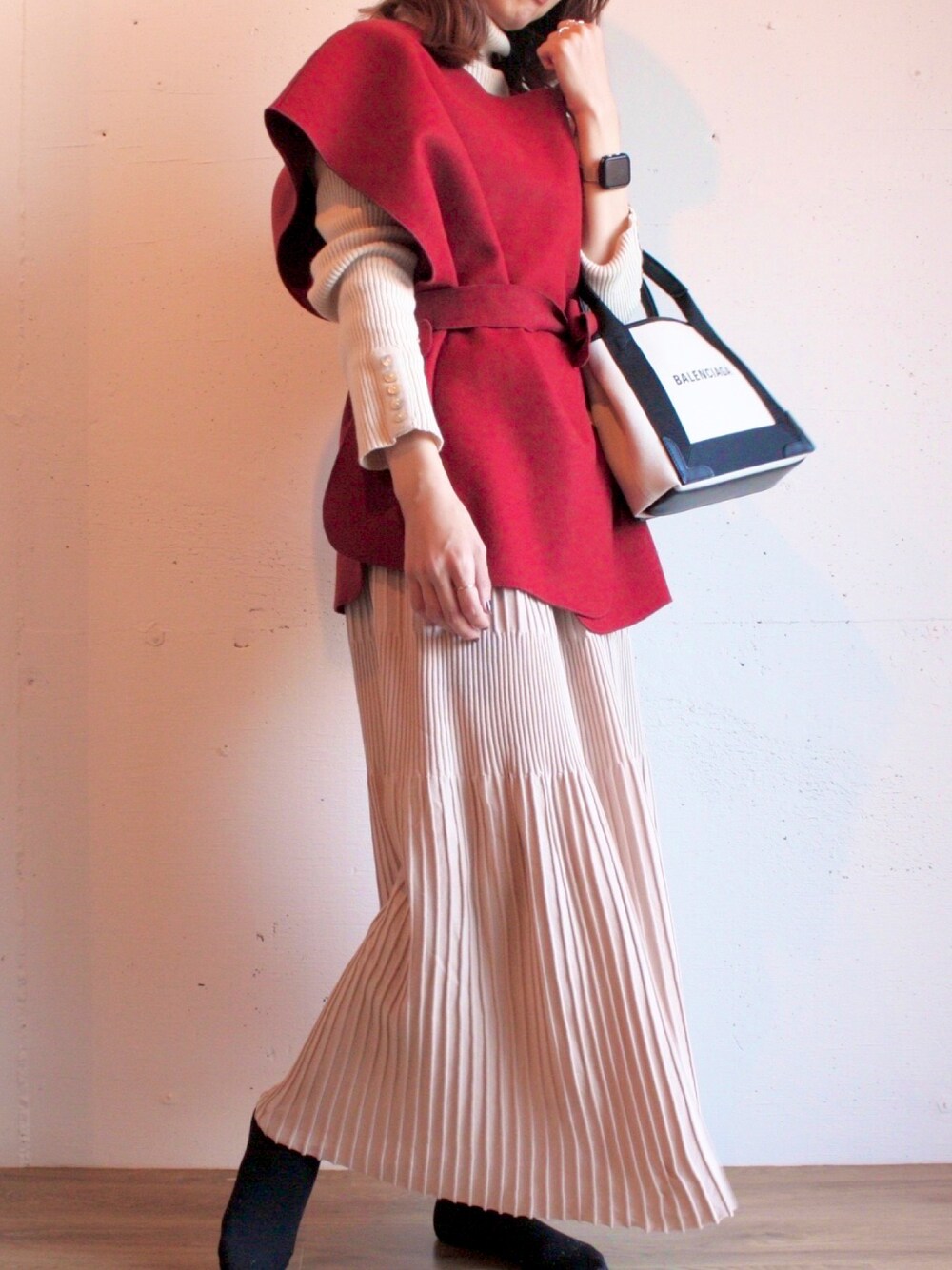 はじめまして、Nonoです🍃 初投稿です これから休日やオフィスコーデを 載せていこうと思います☺︎ よろしくお願いします💞 ________________ この日は雪がパラパラ降っていて とても寒かったので 赤いベストで気分をあげました🍓🌹❤️