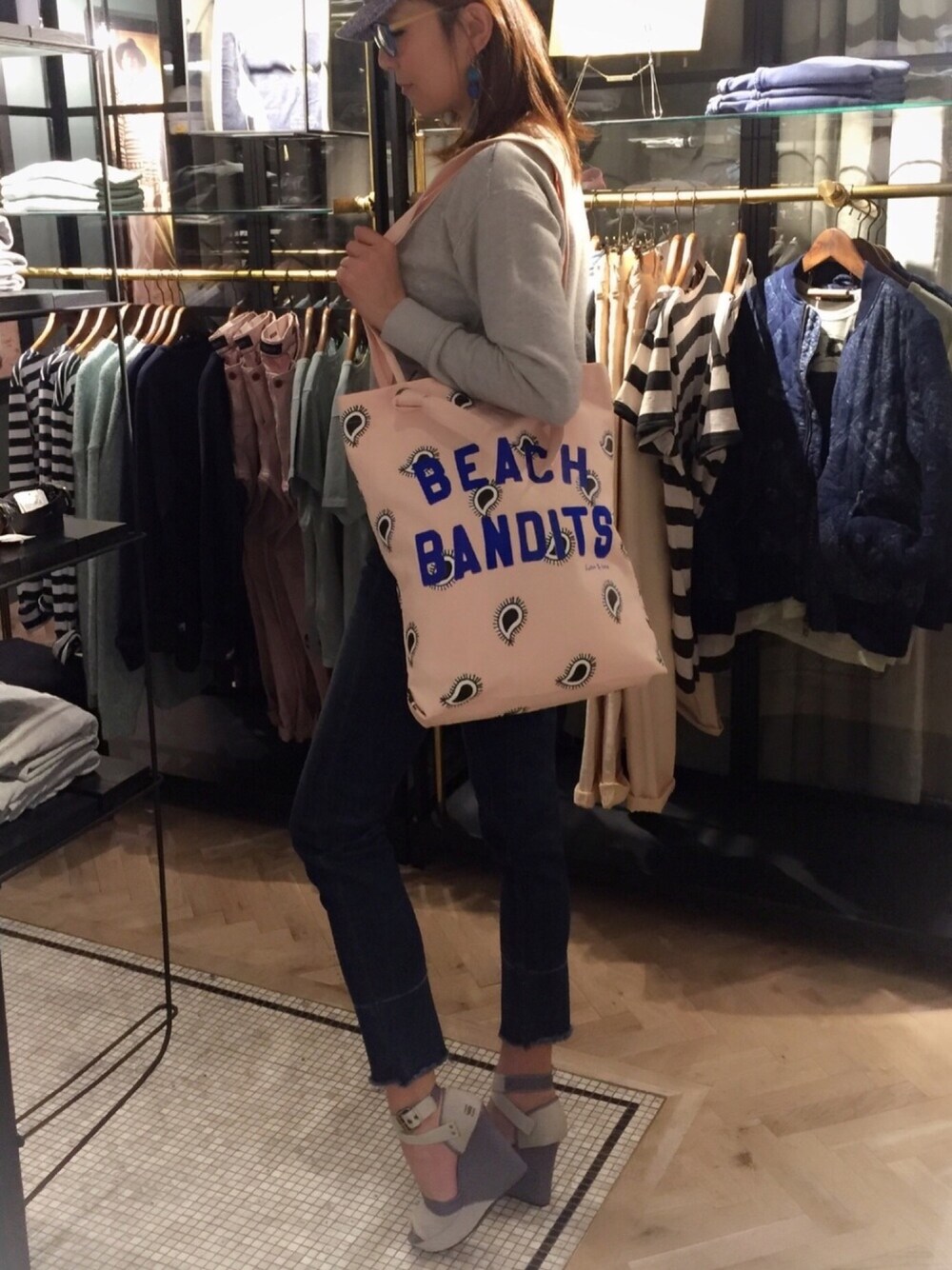 春の通勤スタイル♪ アパレルショップに勤務しているため、店頭スタイルをいつも持参しています。 そんな私のライフスタイルにピッタリな縦長トートはマストなアイテムなんです! 車通勤なので、こんな感じの運転しやすいスウェット&デニムコーデがお気に入りです♡ こちらのデニム、8分丈なので足首だけチラッと出るのが細見えマジック⁈ 裾部分はトレンドの切りっぱなしフリンジ仕上げなのもポイントです♪ 仕上げは大ぶりのアクセで全体を引き締めてみました。