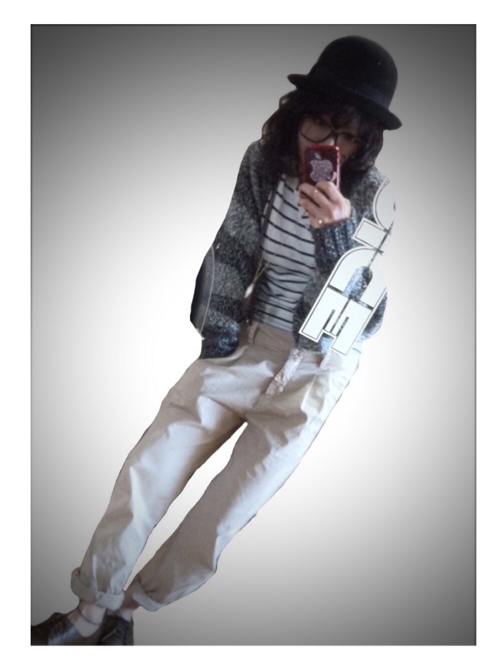 ニットカーデ…Forever21 パンツ…ZARA サスペンダー…古着 靴…しまむら ボーラー帽…WEGO