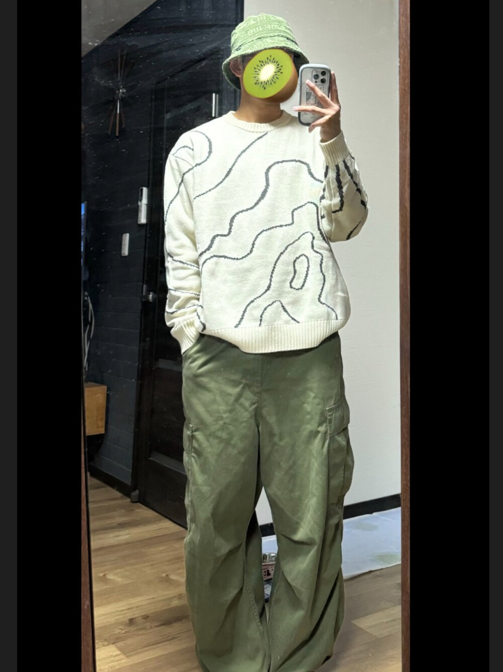 ZARAで見つけたかわいいニットを カーキで挟んだラフコーデ^^