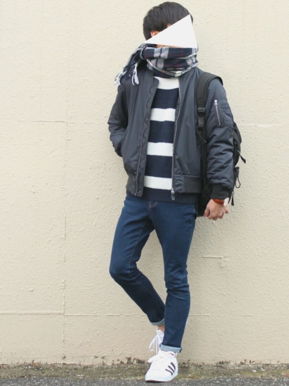 今日のコーデ👕👖 初心者にもやさしい ボーダーニットコーデ✨ ボーダーをアウターの隙間からチラ見せで、少し子慣れた感じに☝ 全体的に暗めにまとめることで大人っぽさも増します〜 ボーダーニットは、昨年INHERIT Outletのお店で¥5,000円ほどの福袋に入ってたアイテムです🙌 アウターはユニクロ、デニムパンツはGUと全体的にプチプラなところもポイントですね〜 晴れていても気温が低く寒いので首元も暖かく✨ そんな日にぜひっ 参考になれば嬉しいですっ