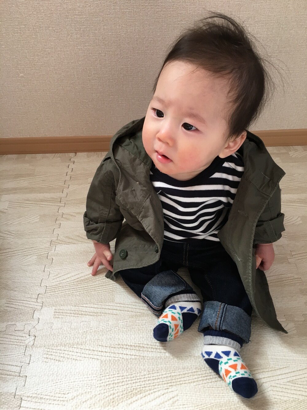 お気に入りのミニタリージャケット♡ 春には大活躍間違いなし😎 今日は笑顔が取れず😭