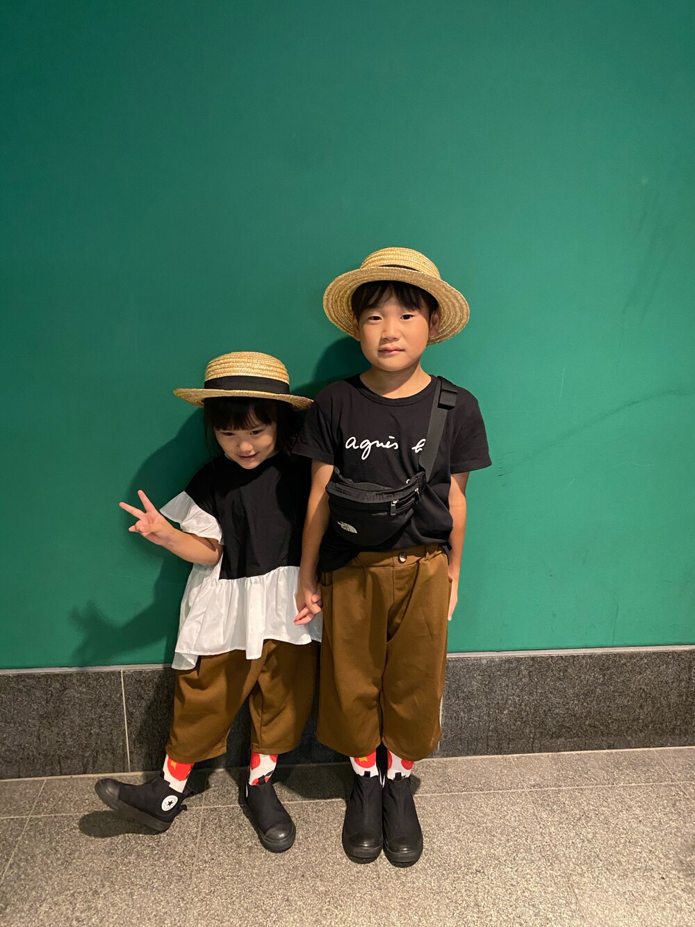 麦わら帽子の日☺︎ おはようございます☺︎ Black✖️Brownに🍎🧦 👦🏿👧🏽🖤🤎 まだまだ暑いけど💦 ちょっぴり秋を意識🫣🍁💕 --------------------- 9y7m 5y3m --------------------- いつもイイネやお気に入り、素敵なフォルダに入れて下さる皆さま☺︎ 本当にありがとうございます( ⁎ᵕᴗᵕ⁎ )❤︎ 見ていただきありがとうございました☺︎