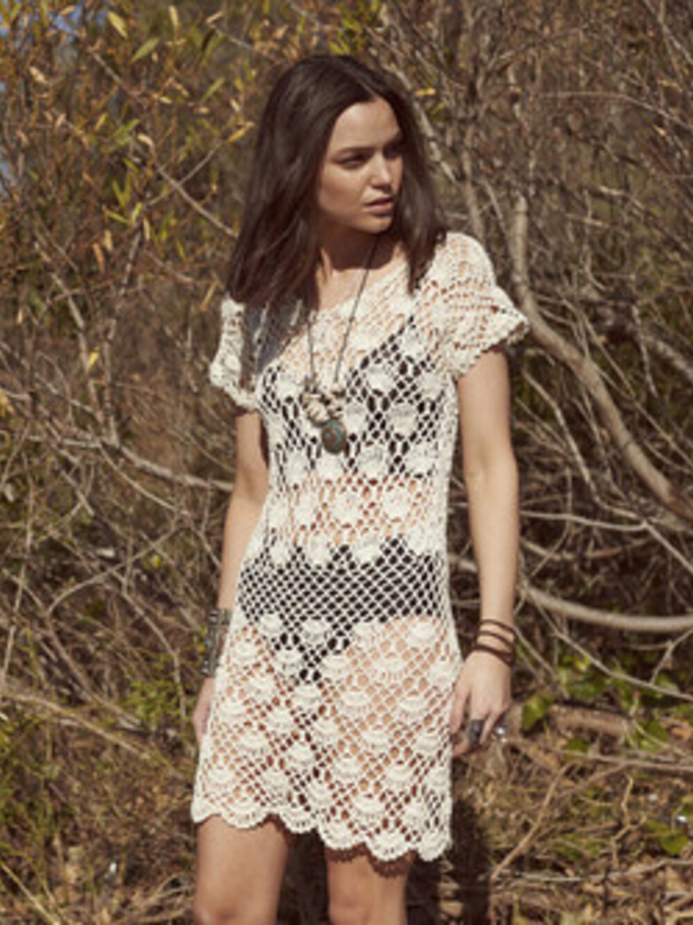 Stunning crochet mini dress, white that comes with a natural slip to wear with a bikini or out to dinner.