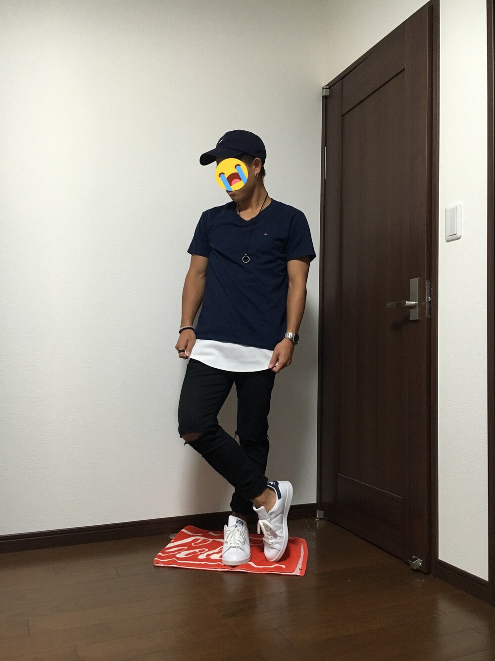 SOUJUNのスニーカー「adidas アディダス STAN SMITH スタンスミス M20325 R.WHITE/R.WHITE/NEW.NAVY(ホワイト×ネイビー)」を使ったコーディネート