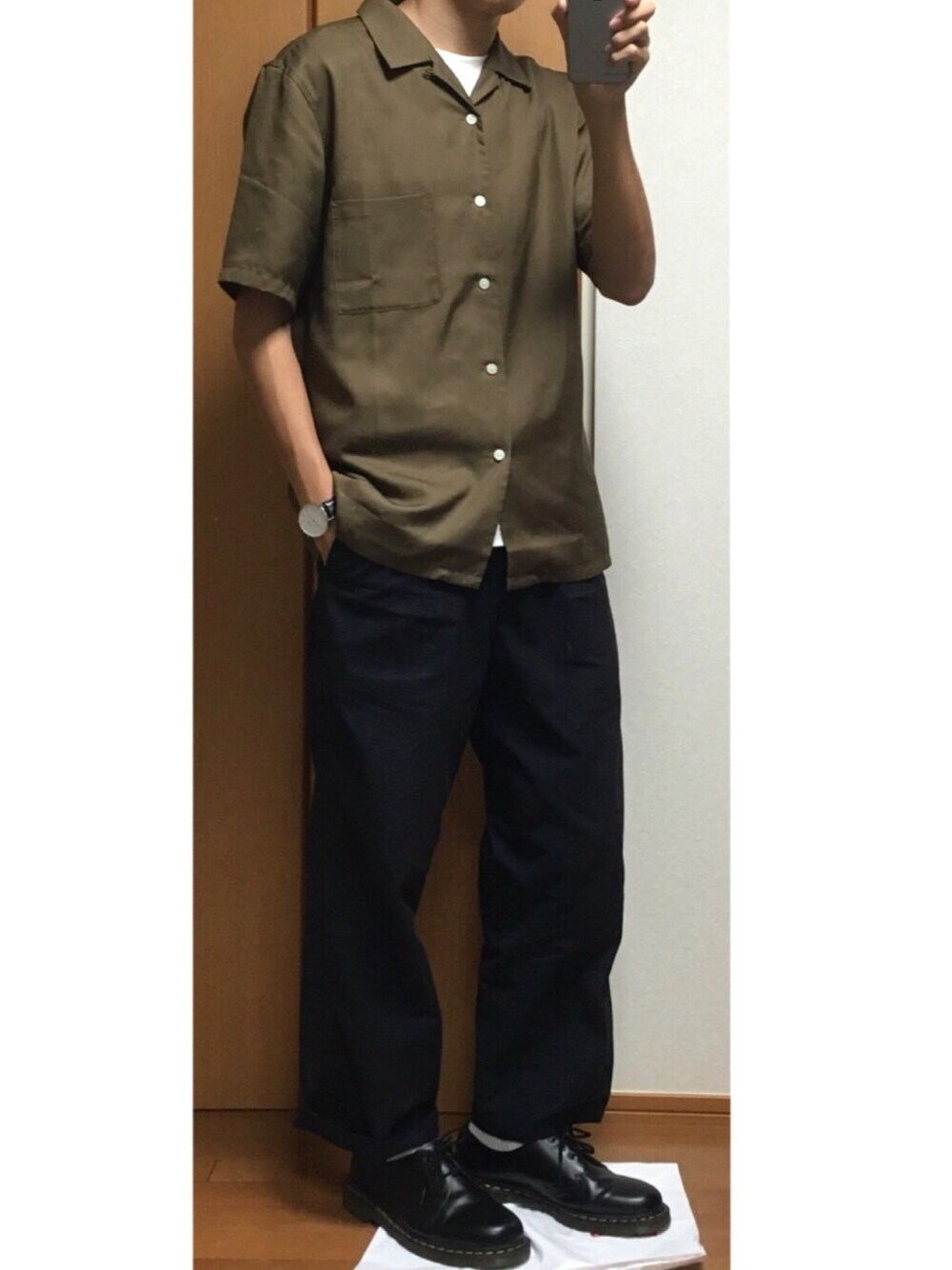 時計と靴以外はすべてユニクロ ユニクロU開襟シャツとワイドパンツ最高