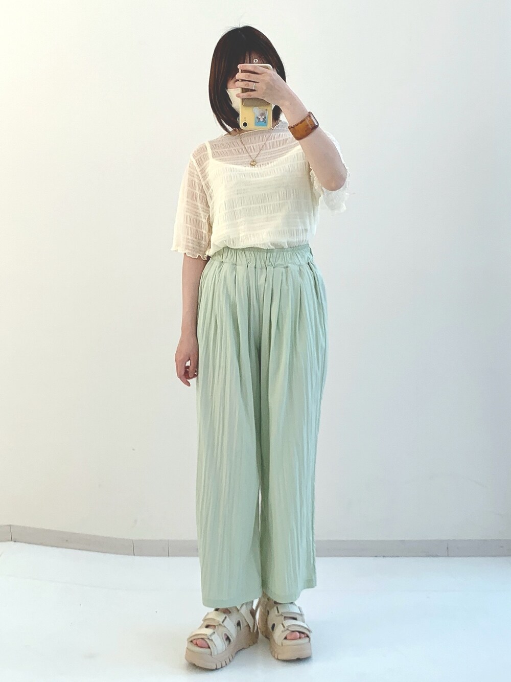 しゅわしゅわ爽やかコーデ🍃 じわじわと暑い夏が顔を覗かせてきましたね シャーリングトップスのしゅわしゅわ感と ライトグリーンのギャザーパンツが 爽やかで可愛い👏 身長:150cm 股下:71cm 着用サイズ トップス:M パンツ:PS