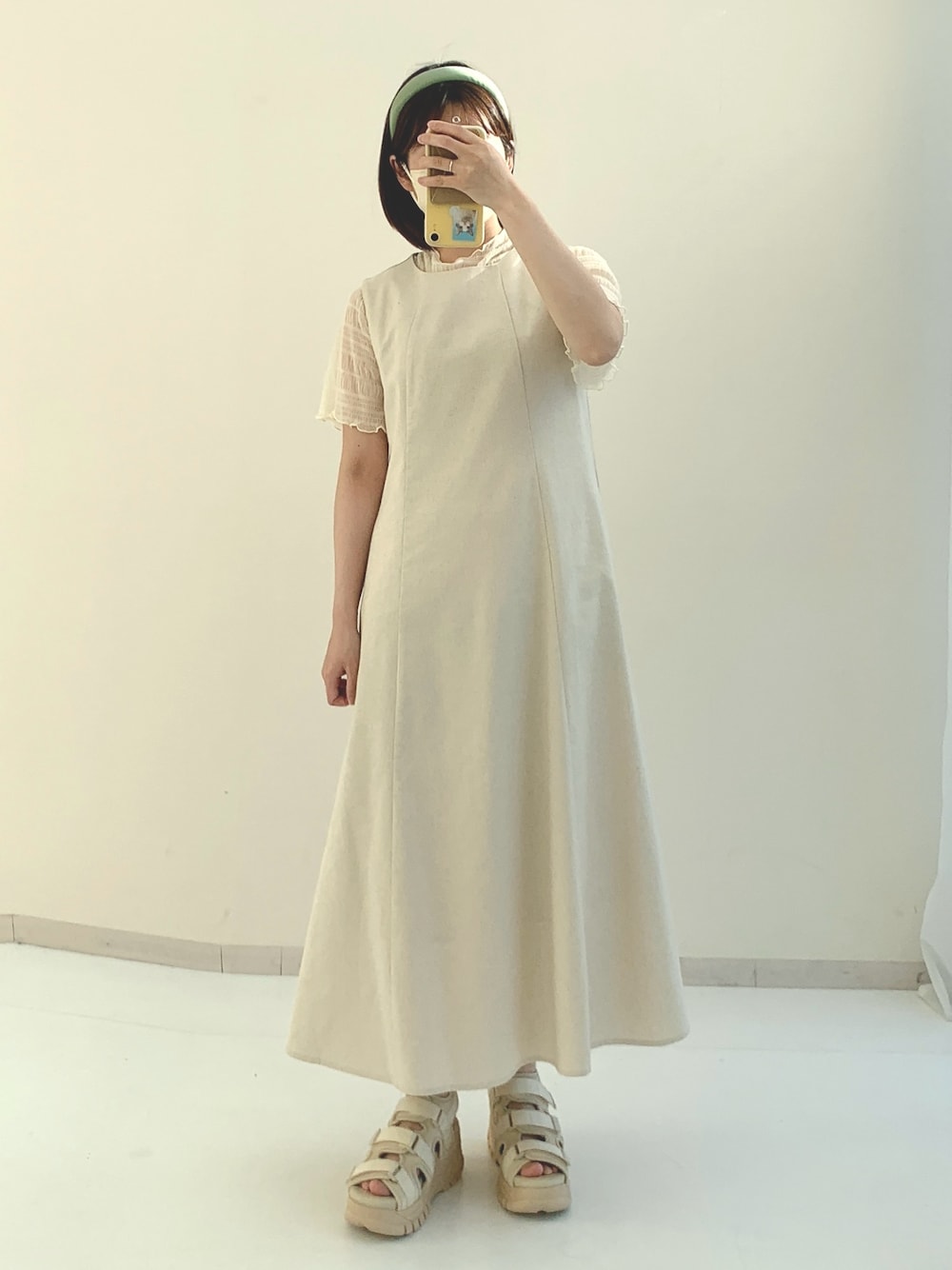 オールベージュコーデ🍞 フェミニンコーデ×サンダルで外すのが好きです◎ こちらのワンピの上半身がすらっとしてるのに裾がふわっと可愛いシルエットが推しです🫰🏻 身長:150cm 股下:71cm 着用サイズ トップス:M ワンピース:PS