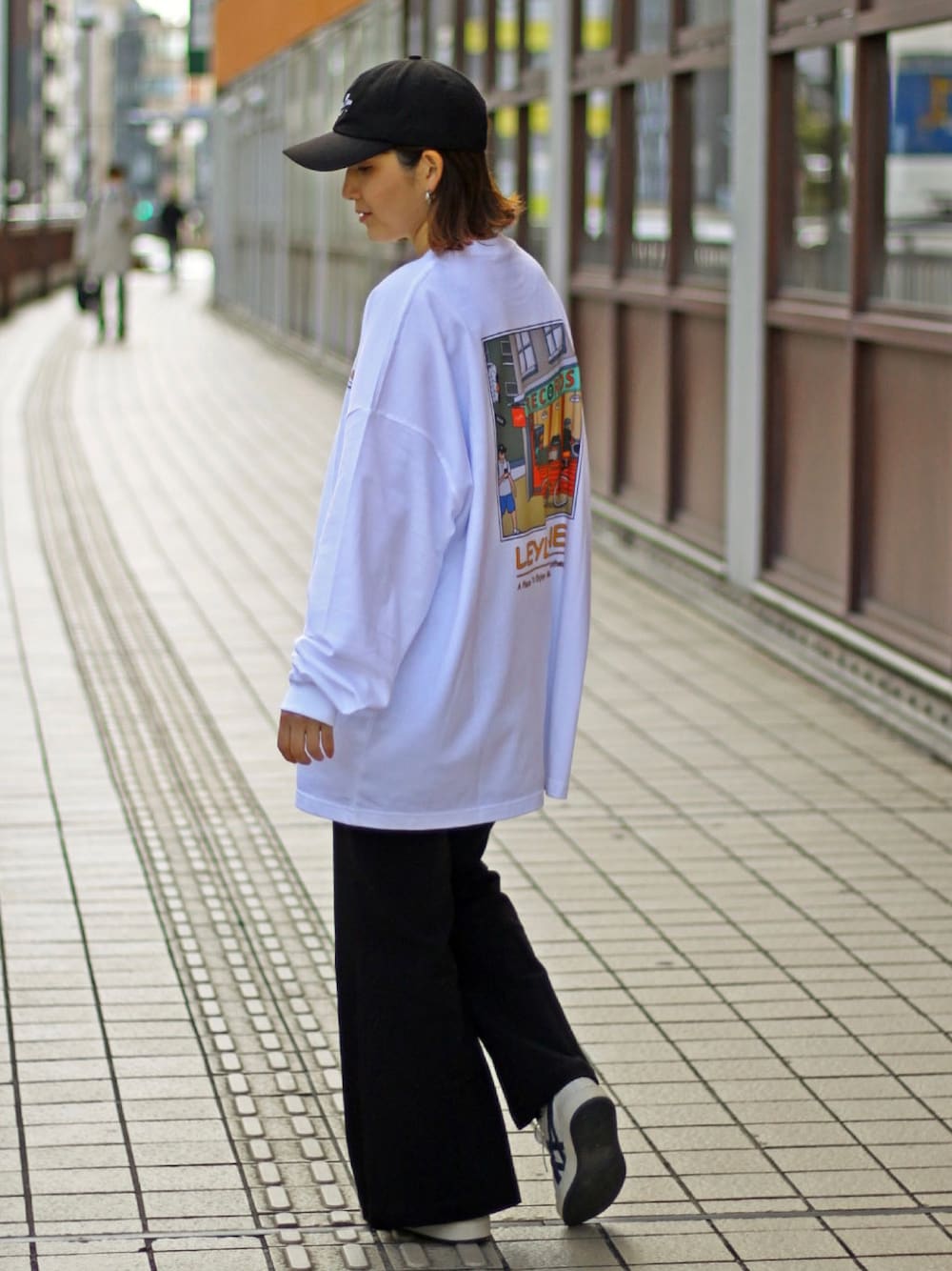 ビッグシルエットのロンTは最近たくさん着回しています😊レトロな雰囲気のバックプリントがお気に入りです🧡 Instagram→soe_0213