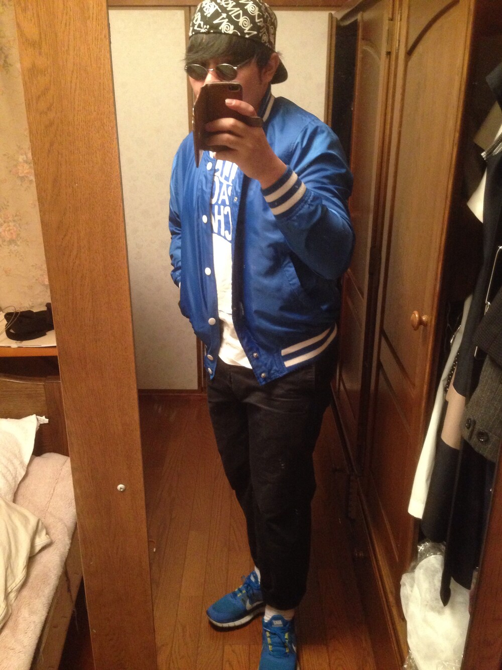 ぼうし:New Era×Stussy めがね:Ray-Ban すたじゃん:H&M Tしゃつ:Hollister とけい:G-SHOCK ずぼん:Gap くつした:100均 くつ:NIKE 青メインで
