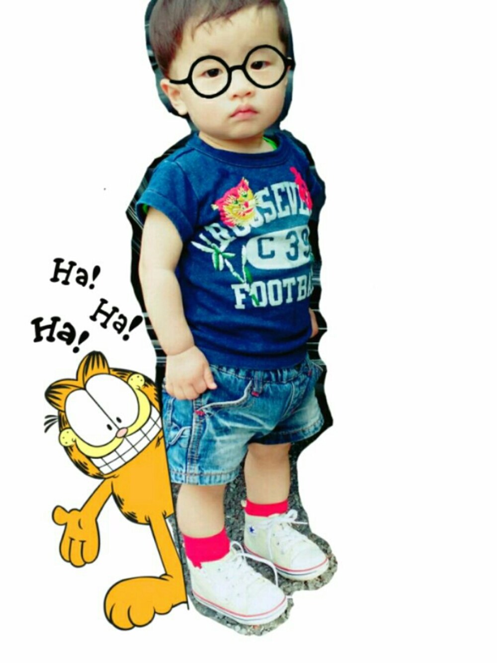 デニムとデニム❤ 半袖短パンver🙌 最近玄関にある自分の靴持ってきて 『う!う!』 (これ履かせろ外行くぞ) って遊ぼうアピール🙆 悪くない❤