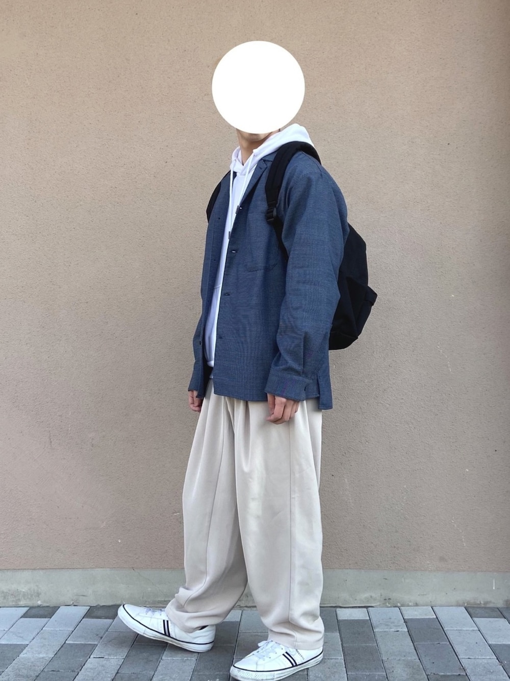 定番色ノームコアコーデ。 青×白×黒の王道シンプル、ありがたいことに周りからめちゃ評判いいコーデです アウターを脱げばオールホワイトにもできる2way。 ちなみにSteven Alanのアウターは高級感のある生地や風合いを楽しめるデザインが多く、シンプルおしゃれ好きの方はたまらなく好きだと思います。 白パーカーと白スニーカーの真っ白をクリームがかった色の白パンツをアクセントとして取り入れました。 こうすれば他とも被らないですし、腰の位置が曖昧になってスタイルカバーできるので、男女問わずオススメの組み合わせです! 趣味の合う方お気に入り、フォロー待ってますすす😤