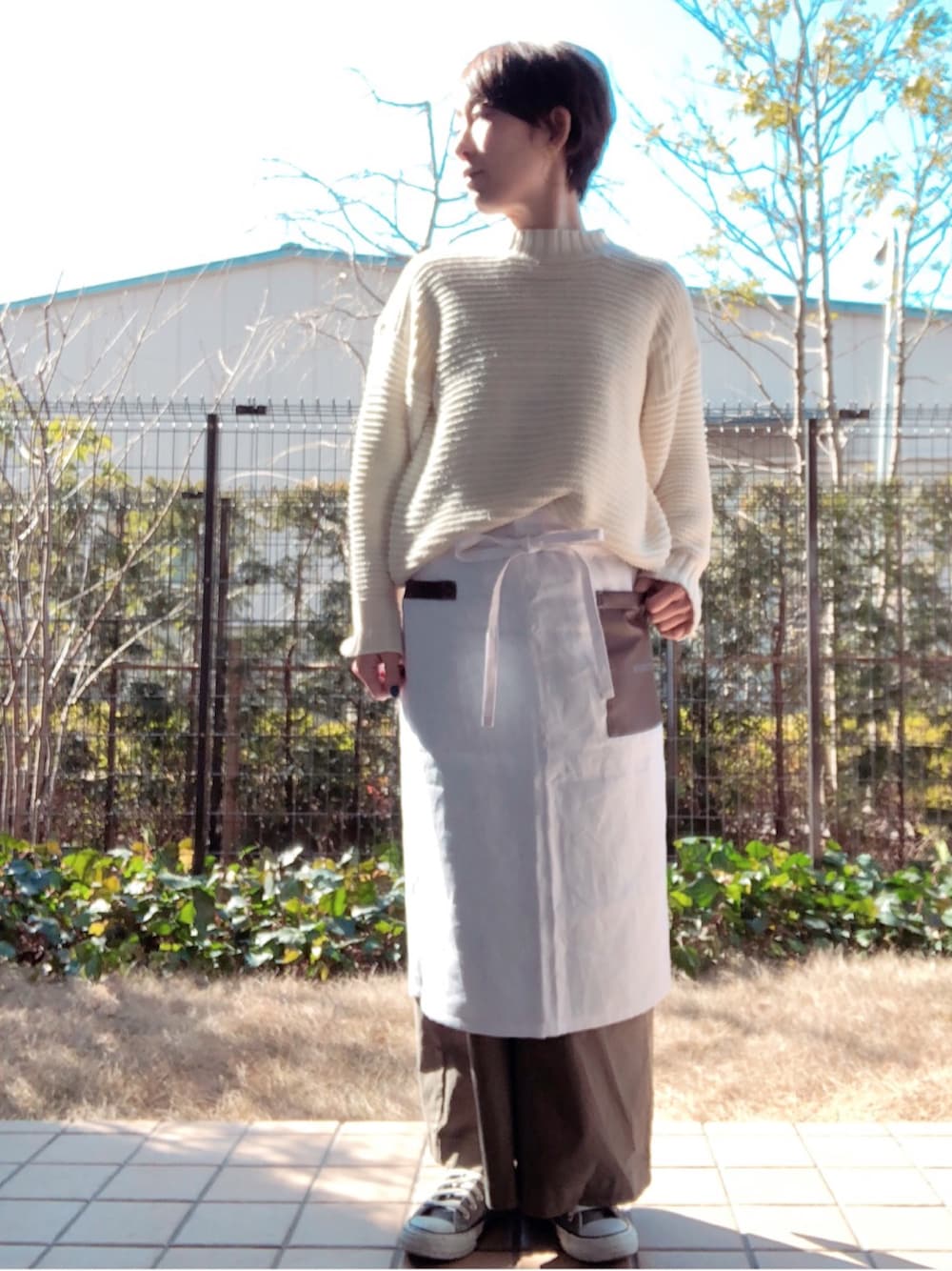 いつも見てくださりありがとうございます♬ soharu母です☺︎ ホワイト×ホワイト×カーキ バタバタしてちょっとお久しぶりのアップになりました💦 ハンドメイドのギャルソンエプロンでパン屋さんみたいなコーデ🥐 真っ白なリネン生地でギャルソンエプロンを作りました。 しっとりとした生地感が大好きなこのリネン。 ほどよく厚みもありしっかりしてるのでガシガシ使っても大丈夫そうです♬ お洋服感覚でちょっとそこまでに着けて行ってもいいデザインを考えて作ってます♬ 良かったらインスタも見てみて下さいね! いいね、お気に入り、フォロー、コメントなどとっても嬉しいです♡