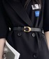 ジャケットの上からベルトを巻くことでくびれたウエストを強調し、上品かつシックな雰囲気を出しています♪ このようなコーデはセットインでジャストサイズのジャケットを使った方が世界観に合うと思います、